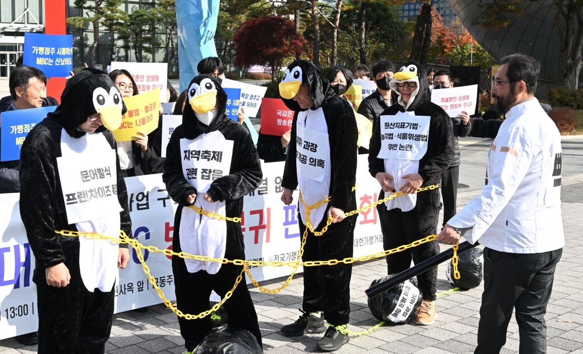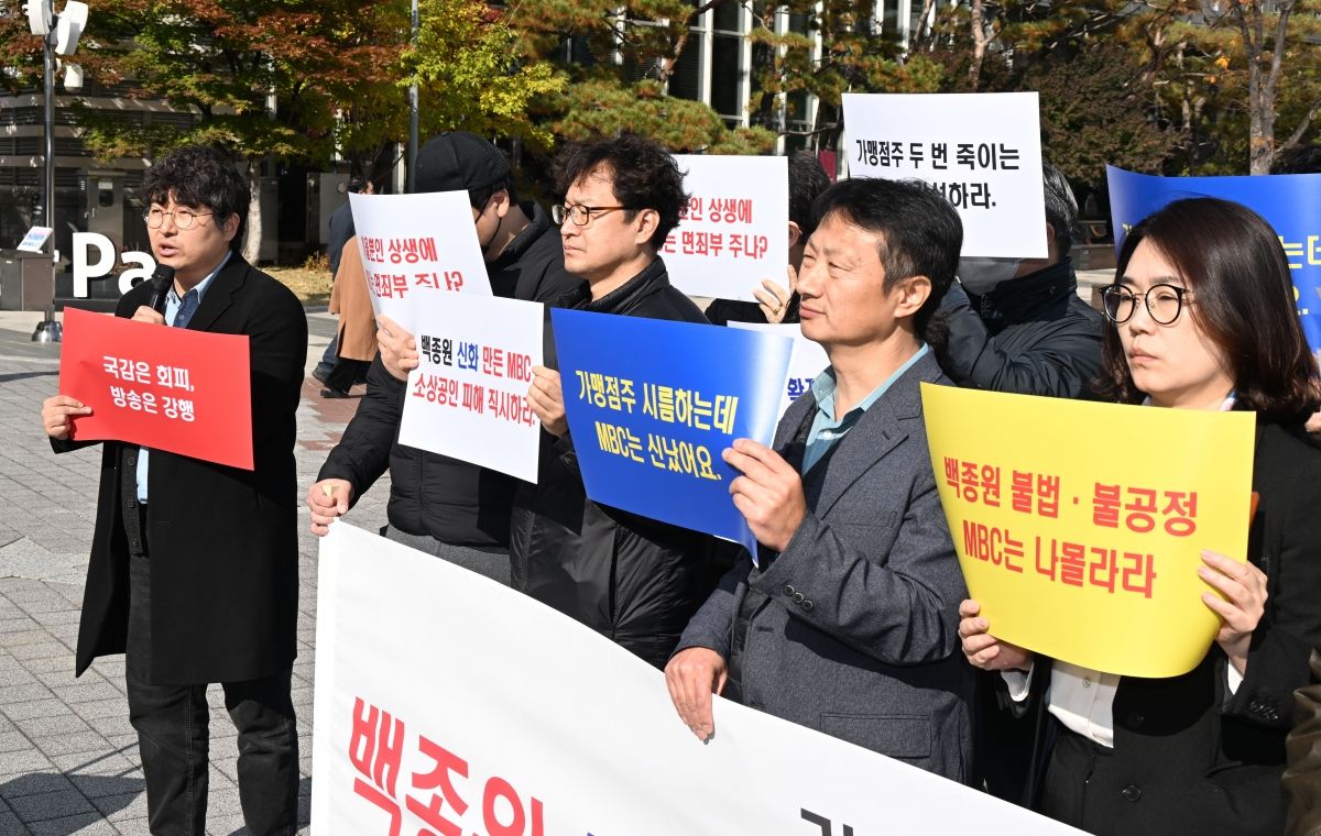 11ÀÏ ¼¿ï ¸¶Æ÷±¸ »ó¾Ïµ¿ MBC ½Å»ç¿Á ¾Õ¿¡¼ ¿¬µ·º¼Ä«Ã÷°¡¸ÍÁ¡ÁÖÇùÀÇȸ¿Í Àü±¹°¡¸ÍÁ¡ÁÖÇùÀÇȸ °ü°èÀÚµéÀÌ ±âÀÚȸ°ßÀ» ¿°í ÀÖ´Ù.