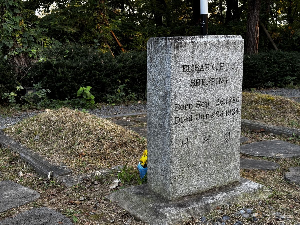 ޹æÀÇ Áß½ÉÁö´Â ¼±±³»ç ¹¦¿øÀ̾ú´Ù. ´ãÀåÀ» µû¶ó ³ ¿À¼Ö±æ ³¡¿¡ ¹Ì±¹ ³²Àå·Îȸ ¼±±³»ç¿Í °¡Á· 26¸íÀÇ À̸§ÀÌ »õ°ÜÁø ¹¦ºñ°¡ ÁÙÁö¾î ÀÖ´Ù. ¼¼Æò(Elizabeth J. Shepping, 1885~1934) ¼±±³»çÀÇ ¹¦ºñ ¾Æ·¡¿¡´Â ´©±º°¡ µÎ°í °£ ³ë¶õ µé²É ÇÑ ¼ÛÀ̰¡ ³õ¿© ÀÖ¾ú´Ù.