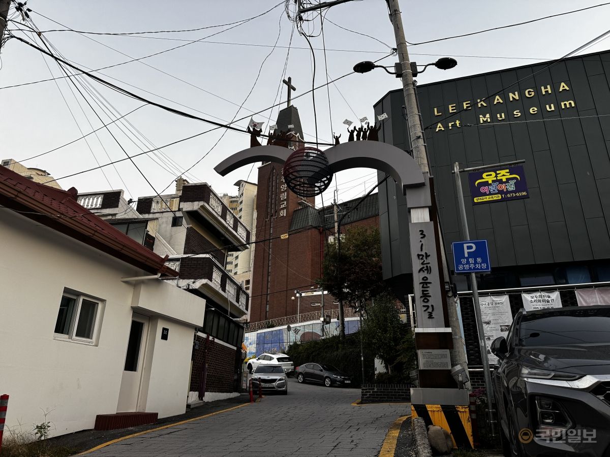 ¾ð´ö±æÀ» ¿À¸£ÀÚ Â£Àº ±Ý¸ñ¼ ÇâÀÌ ÄÚ³¡À» ½ºÄ£´Ù. ±¤ÁÖ ³²±¸ ¾ç¸²µ¿Àº Çѱ¹ °³½Å±³ ÃÊâ±â, ¹Ì±¹ ³²Àå·Îȸ ¼±±³»çµéÀÌ º¹À½ÀÇ ±ê¹ßÀ» ²ÈÀº °÷ÀÌ´Ù. °¡À»ÀÌ¸é ¸¶À» Àüü°¡ ±Ý¸ñ¼ ÇâÀ¸·Î µ¤ÀÌ°í ºÓÀº º®µ¹ ´ãÀå°ú ¿À·¡µÈ °¡¿Á, ±³È¸¿Í ¼±±³ ±â³äºñ, ±â³ä°üÀÌ ¾ð´ö±æÀ» µû¶ó ÁÙÁö¾î ÀÖ´Ù.