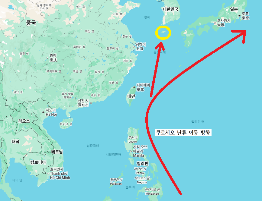 °¡Àå ½±°Ô ÃßÁ¤µÇ´Â °ÍÀº Äí·Î½Ã¿À ÇØ·ù´Ù. ÀÌ ÇØ·ù´Â Çʸ®ÇÉ µ¿ÂÊ ÇØ¾È¿¡¼ ½ÃÀÛÇØ ´ë¸¸À» Áö³ª ÀϺ» ³²ºÎ¿Í Á¦ÁÖ ÀÎ±Ù ÇØ¿ª±îÁö ¿µÇâÀ» ¹ÌÄ£´Ù.