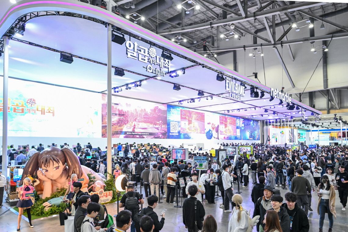 ‘이블베인’ ‘나 혼자만 레벨업: 카르마’ ‘일곱 개의 대죄: Origin’ ‘몬길: STAR DIVE’ ‘SOL: enchant’ 등 장르가 다른 신작들을 대규모 시연존(145대)에서 선보였다. 삼성전자와 협업한 최신 모니터·모바일 기반 시연과 무안경 3D 스페이셜 사이니지가 관람객 눈길을 끌었다.
