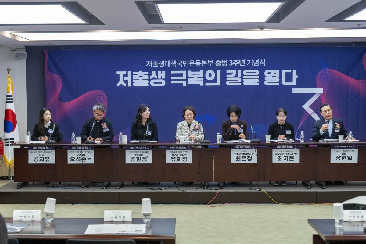 ÀúÃâ»ý´ëÃ¥±¹¹Î¿îµ¿º»ºÎ(º»ºÎÀå °¨°æÃ¶, ÀÌÇÏ Ãâ´ëº»)´Â Áö³ 12ÀÏ Ãâ¹ü 3ÁÖ³âÀ» ¸Â¾Æ Çѱ¹ÇÁ·¹½º¼¾ÅÍ¿¡¼ ±â³ä½Ä°ú ¼¼¹Ì³ª¸¦ °³ÃÖÇß´Ù. À̳¯ ±â³ä½Ä¿¡´Â Á¤ºÎ¿Í ÁöÀÚü, Á¾±³°è, ¹Î°£´Üü µî °¢°è °ü°èÀÚ 100¿©¸íÀÌ Âü¼®ÇØ Áö³ 3³â°£ÀÇ ÀúÃâ»ý ´ëÀÀ ¼º°ú¸¦ µ¹¾Æº¸´Â ¶æ±íÀº ½Ã°£À» °¡Á³´Ù.