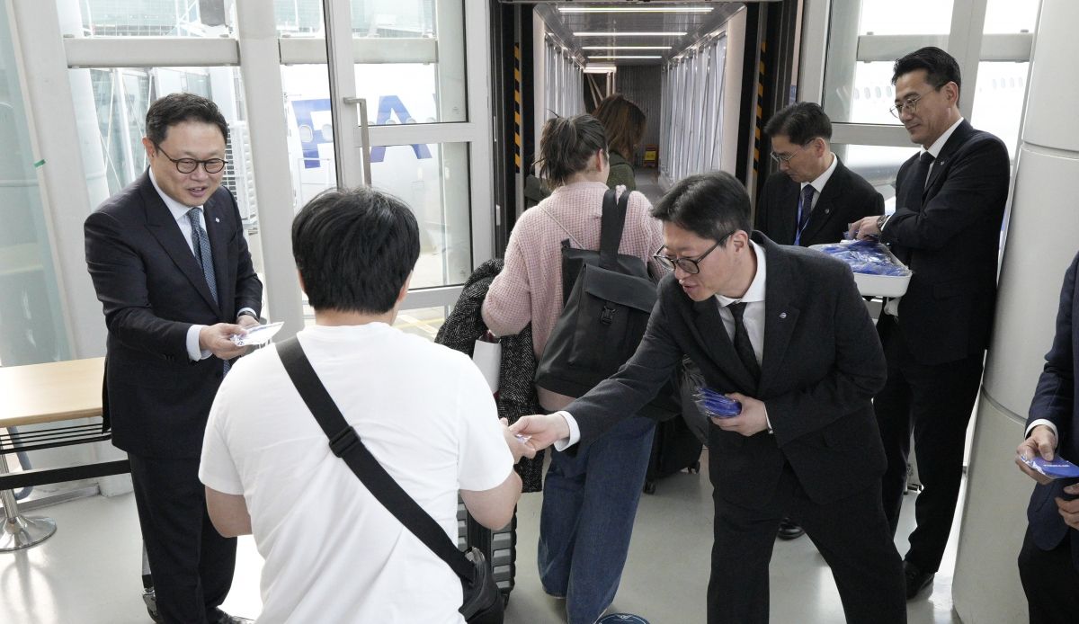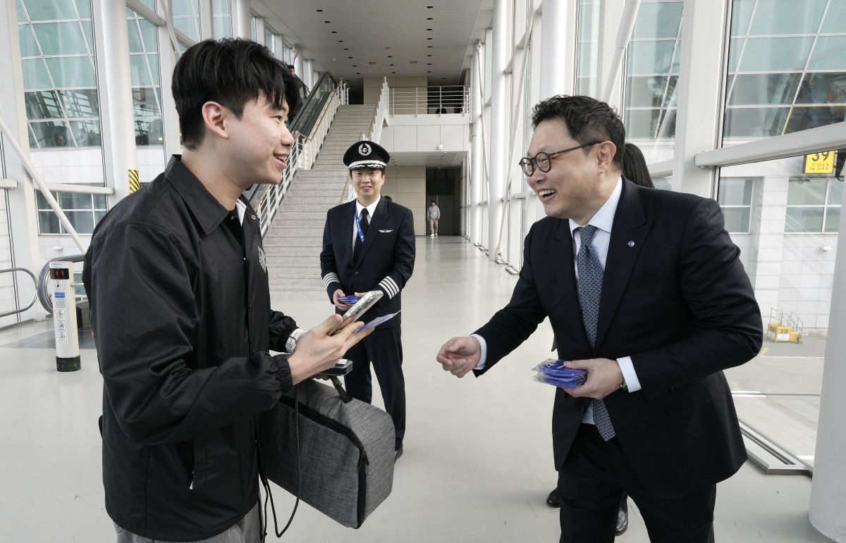 ±¹Á¦¼± ù ÃëÇ×À» ¾ÕµÎ°í ÀÎõ°øÇ׿¡¼ À±Ã¶¹Î ´ëÇ¥ÀÌ»ç¿Í ÀÓÁ÷¿øµéÀº Á÷Á¢ ž½Â°´À» ȯ¼ÛÇÏ¸ç ±â³äǰÀ» Àü´ÞÇØ °¨»çÀÇ ¶æÀ» ÀüÇß´Ù.