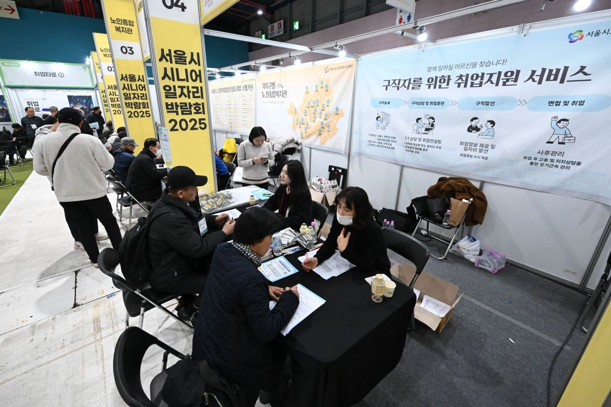 '¼­¿ï½Ã ½Ã´Ï¾î ÀÏÀÚ¸® ¹Ú¶÷ȸ 2025'°¡ ¿­¸° 18ÀÏ ¼­¿ï °­³²±¸ ¼­¿ï¹«¿ªÀü½ÃÄÁº¥¼Ç¼¾ÅÍ(SETEC)¿¡¼­ ½Ã´Ï¾î ±¸Á÷ÀÚµéÀÌ Ã¤¿ë°ø°í°Ô½Ã´ë¸¦ »ìÆìº¸°í ÀÖ´Ù.