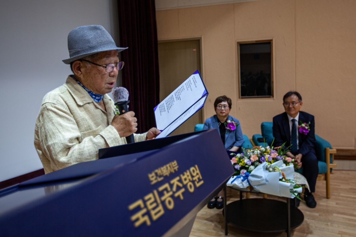½ÃÀÎÀº ȯ°©À» ³Ñ±ä Á¤½Å°ú Àü¹®ÀÇ¿¡°Ô ¡®¼Ò³â¡¯À̶ó´Â À̸§À» ºÙ¿©Áá´Ù. ¡°À°½ÅÀÇ ¼Ò³âÀÌ ¾Æ´Ï¶ó ¸¶À½ÀÇ ¼Ò³â, Á¤½ÅÀÇ ¼Ò³â, ±×°¡ °¡´Â ±æ °Åħ ¾ø¾î¶ó.¡± Áö³ 7¿ù ±¹¸³°øÁÖº´¿ø ´ë°´ç, ÀÌÁ¾±¹(63) º´¿øÀå ÅðÀÓ½Ä ´Ü»ó¿¡ ¿À¸¥ ³ªÅÂÁÖ ½ÃÀÎÀº ¶°³ª´Â ¿øÀåÀ» À§ÇØ ÁöÀº Ãà½Ã ¡®³»Àϵµ ¿©ÀüÈ÷ ¼Ò³âÀ̽ö󡯸¦ ³¶¼ÛÇÏ¸ç ±×¸¦ ¹è¿õÇß´Ù.
