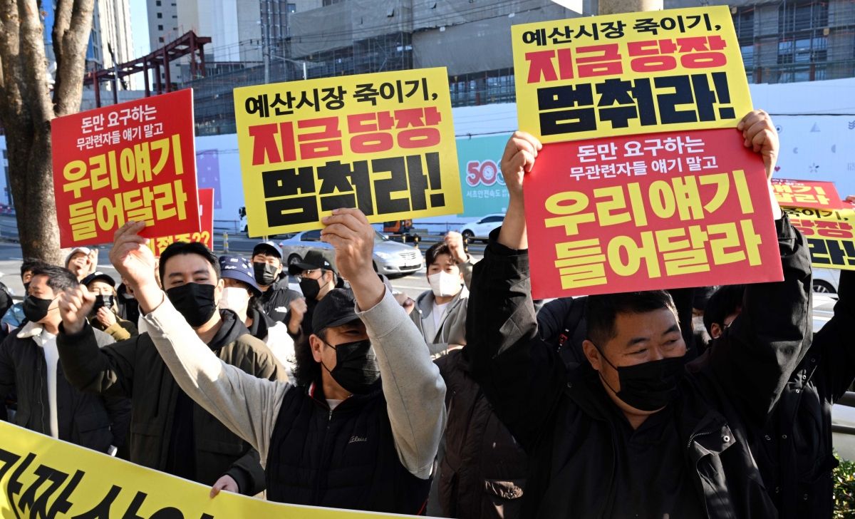 ´õº»ÄÚ¸®¾Æ °¡¸ÍÁ¡ÁÖ ¹× ¿¹»ê½ÃÀå »óÀÎȸ¿øµéÀÌ 19ÀÏ ¼¿ï ¼Ãʱ¸ Àü±¹°¡¸ÍÁ¡ÁÖÇùÀÇȸ ¾Õ¿¡¼ Áýȸ¸¦ ¿°í 'Àü±¹°¡¸ÍÁ¡ÁÖÇùÀÇȸÀÇ »ç½Ç ¿Ö°î ¹× ¿©·Ð¸ôÀÌ Áß´Ü Ã˱¸ Áýȸ'¸¦ ¿°í ÀÖ´Ù.