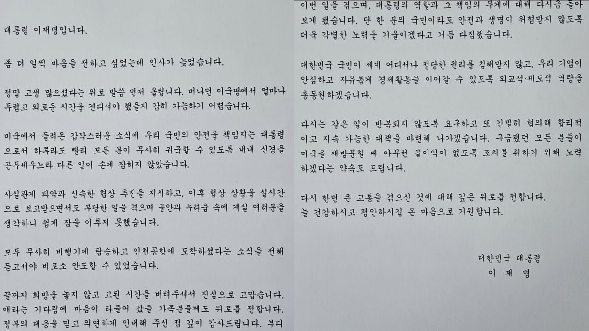 ÀÌÀç¸í ´ëÅë·ÉÀÌ Áö³ 9¿ù ¹Ì±¹ Á¶Áö¾ÆÁÖ¿¡¼ ±¸±ÝµÆ´Ù°¡ Ç®·Á³ Çѱ¹ÀÎ ±Ù·ÎÀÚ 300¿©¸í¿¡°Ô À§·Î ÆíÁö¸¦ º¸³Â´Ù.