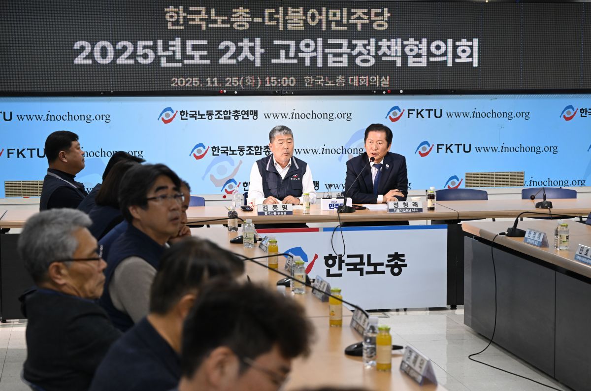 Á¤Ã»·¡ ´õºÒ¾î¹ÎÁÖ´ç ´ëÇ¥¿Í ±èµ¿¸í Çѱ¹³ëµ¿Á¶ÇÕÃÑ¿¬¸Í À§¿øÀåÀÌ 25ÀÏ ¼¿ï ¿µµîÆ÷±¸ Çѱ¹³ëÃÑ¿¡¼ ¿¸° 2025³âµµ Á¦2Â÷ °íÀ§±ÞÁ¤Ã¥ÇùÀÇȸ¿¡ Âü¼®ÇØ ±â³ä»çÁøÀ» ÃÔ¿µÇϰí ÀÖ´Ù.