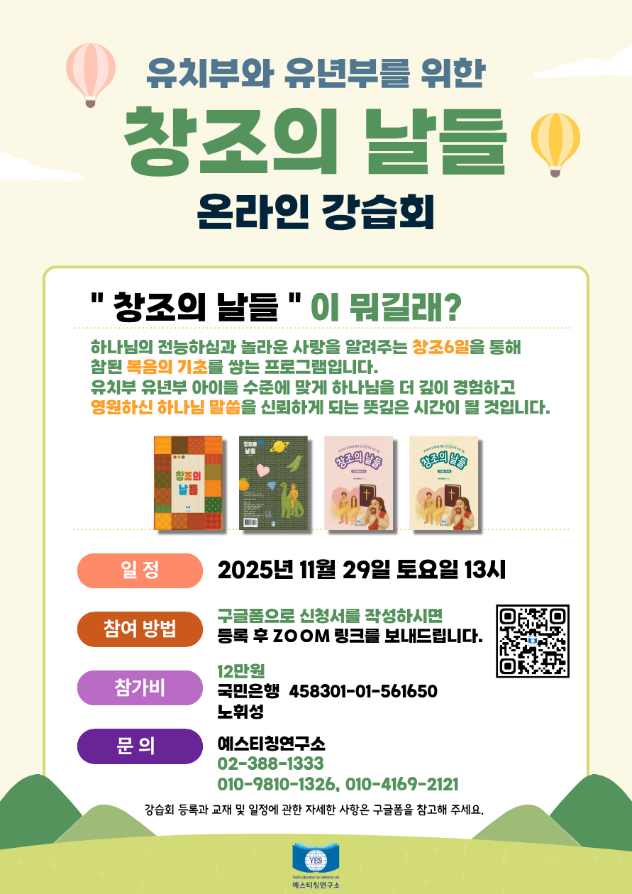¼º°æÀû ¼¼°è°üÀ¸·Î ´ÙÀ½¼¼´ë¸¦ ±³À°ÇÏ´Â ¿¹½ºÆ¼Äª¿¬±¸¼Ò(¼ÒÀå ³ëÈÖ¼º)°¡ ÁÖÀÏÇб³ À¯Ä¡¡¤À¯³âºÎ ¾î¸°À̸¦ À§ÇÑ Ã¢Á¶½Å¾Ó ±³À° ÇÁ·Î±×·¥ ¡®Ã¢Á¶ÀÇ ³¯µé¡¯À» °³¹ßÇß´Ù. ¿¬±¸¼Ò´Â ¿À´Â 29ÀÏ ÇÁ·Î±×·¥ º¸±ÞÀ» À§ÇÑ ¿Â¶óÀÎ(ZOOM) °­½Àȸ¸¦ ¿­¾î ±³È¸µéÀÌ ÀÚ·á¿Í ±³À°¹ýÀ» Àü¼ö¹Þ°í ÀÚüÀûÀ¸·Î âÁ¶ Ä·ÇÁ¸¦ ÁøÇàÇÒ ¼ö ÀÖµµ·Ï µ½´Â´Ù.