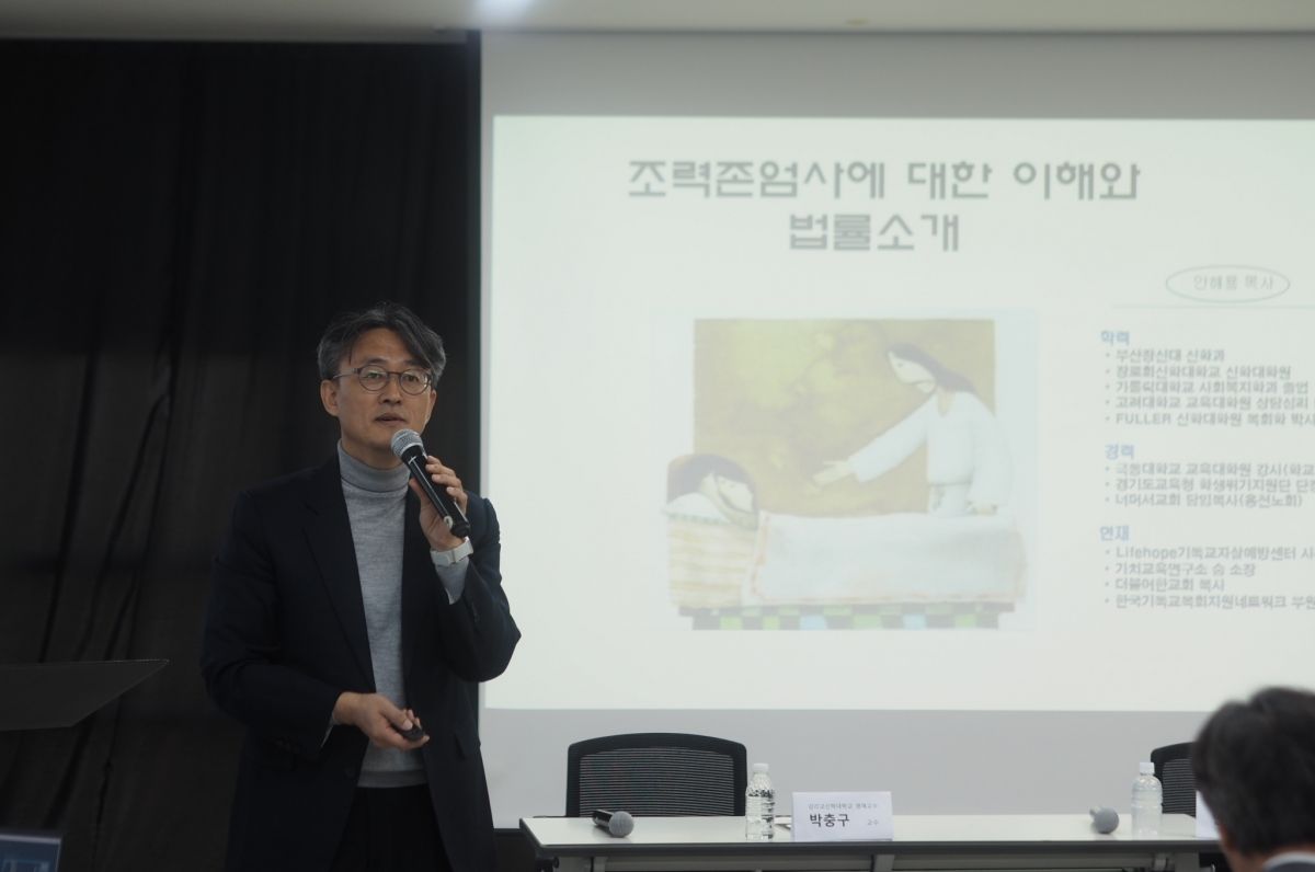 ¾ÈÇØ¿ë Çѱ¹±âµ¶±³¸ñȸÁö¿ø³×Æ®¿öÅ© ºÎ¿øÀåÀÌ 28ÀÏ ¿­¸° ¼¼¹Ì³ª¿¡¼­ Á¶·ÂÁ¸¾ö»çÀÇ °³³ä°ú ¹ý·üÀû ÀïÁ¡¿¡ ´ëÇØ ¼³¸íÇϰí ÀÖ´Ù.