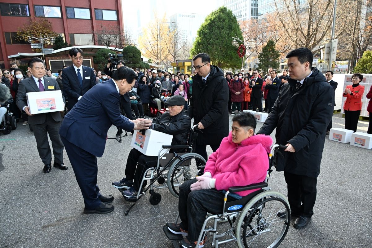 ¿©Àǵµ¼øº¹À½±³È¸ ÀÌ¿µÈÆ ¸ñ»ç°¡ Àå¾ÖÀδ뱳±¸ÀÇ ÇÑ ¼ºµµ¿¡°Ô ±èÀå ±èÄ¡ ¹Ú½º¸¦ Àü´ÞÇϰí ÀÖ´Ù.