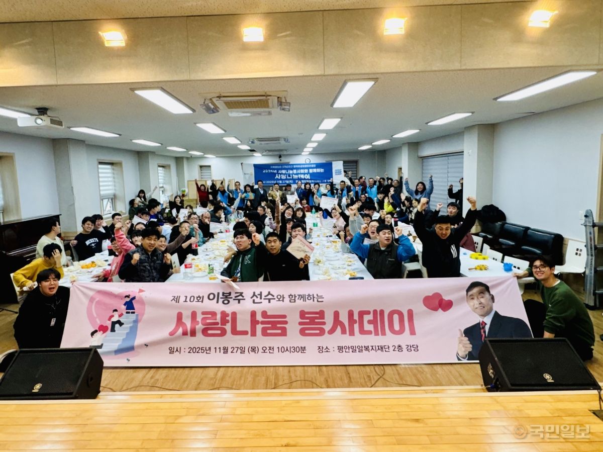 »çȸº¹Áö¹ýÀÎ Æò¾È¹Ð¾Ëº¹ÁöÀç´Ü(ÀÌ»çÀå ÇÑ´öÁø ¸ñ»ç)Àº ÃÖ±Ù °æ±âµµ ÆòÅà Àç´Ü °´ç¿¡¼ ¡®»ç¶û³ª´®ºÀ»çµ¥ÀÌ¡¯¸¦ ¿°í ¸¶¶óÅä³Ê À̺ÀÁÖ ¼±¼ö¸¦ ºñ·ÔÇÑ ºÀ»çÀÚµé°ú Àå¾ÖÀεéÀÌ ÇÔ²²ÇÏ´Â Çà»ç¸¦ ÁøÇàÇß´Ù°í 1ÀÏ ¹àÇû´Ù. À̺ÀÁÖ ¼±¼ö´Â ¿ÃÇØ·Î ÀÌ Çà»ç¿¡ Âü¿©ÇÑ Áö 10³âÀ» ¸Â¾Ò´Ù.