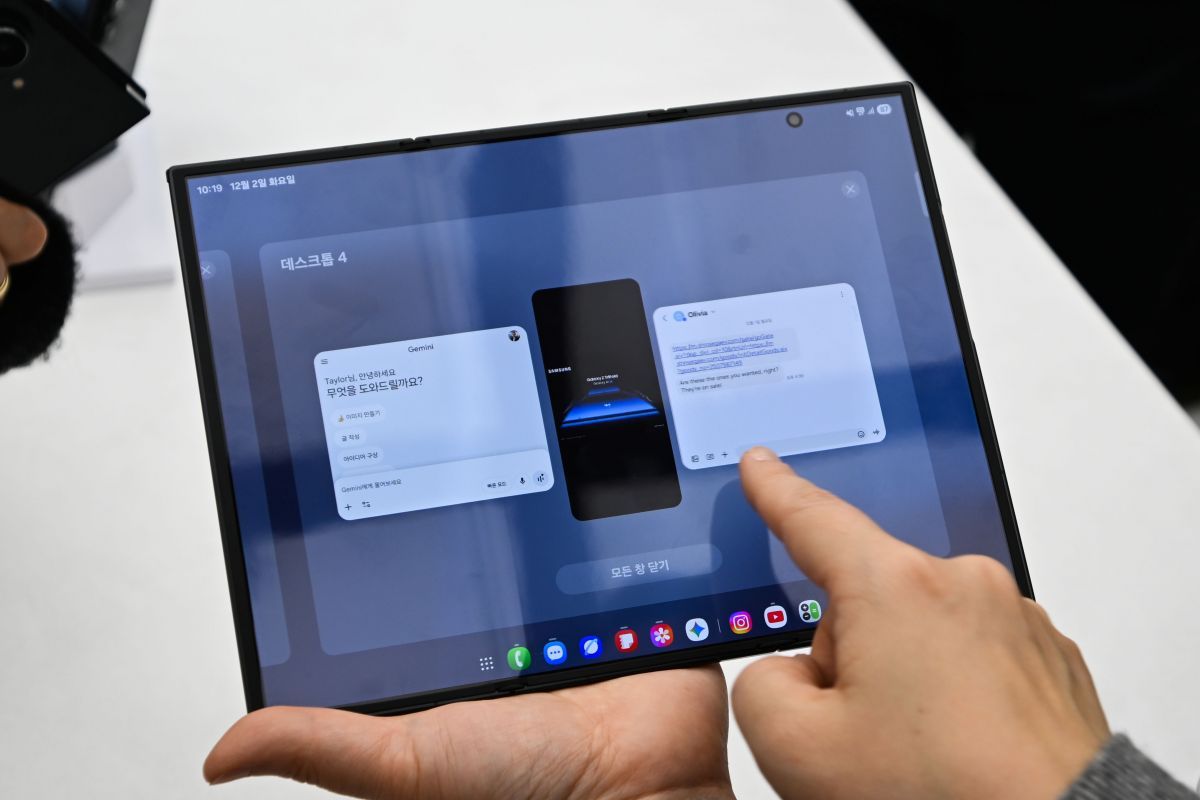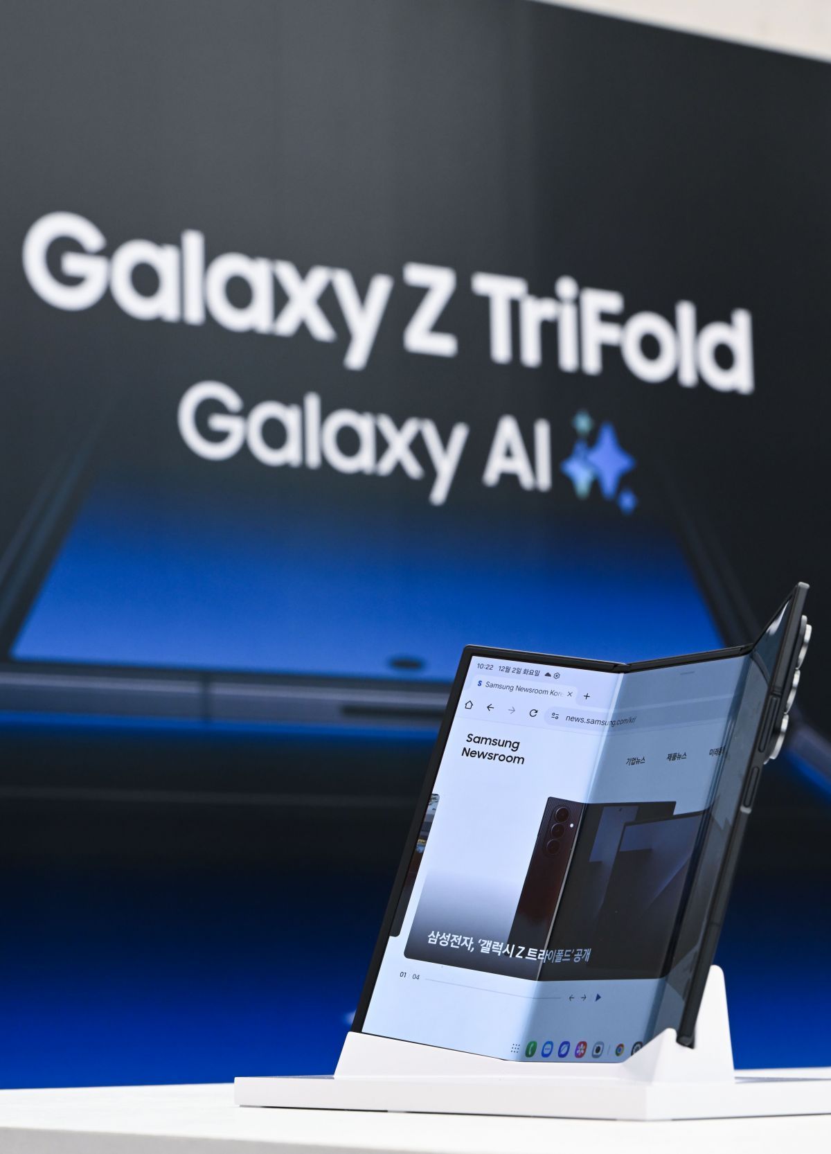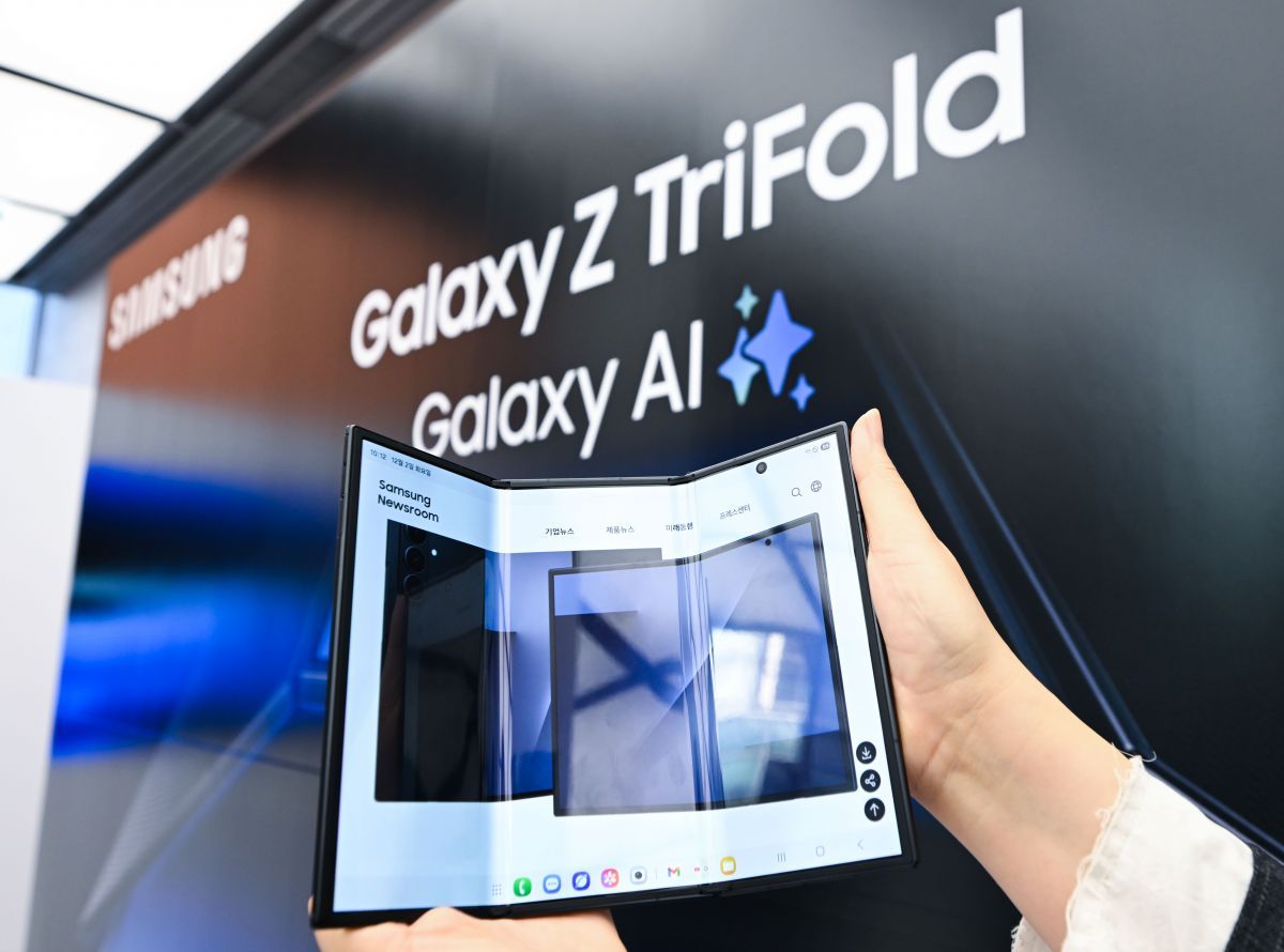 »ï¼ºÀüÀÚ´Â À̳¯ 3´Ü Æú´õºí ½º¸¶Æ®Æù '°¶·°½Ã Z Æ®¶óÀÌÆúµå(Galaxy Z TriFold)'¸¦ °ø°³Çß´Ù. ÆîÄ¡¸é 253mm(10Çü)ÀÇ ´ëÈ­¸éÀ̸ç Á¢À¸¸é 164.8mm(6.5Çü)ÀÇ ¹Ù(Bar) ŸÀÔ È­¸éÀ» Áö¿øÇÑ´Ù. 16GB ¸Þ¸ð¸®¿Í 512GB ÀúÀå¿ë·®¿¡ 'Å©·¡ÇÁƼµå ºí·¢' »ö»ó ´ÜÀÏ ¸ðµ¨·Î Ãâ½ÃÇÑ´Ù. °¡°ÝÀº 359¸¸ 400¿øÀÌ´Ù.