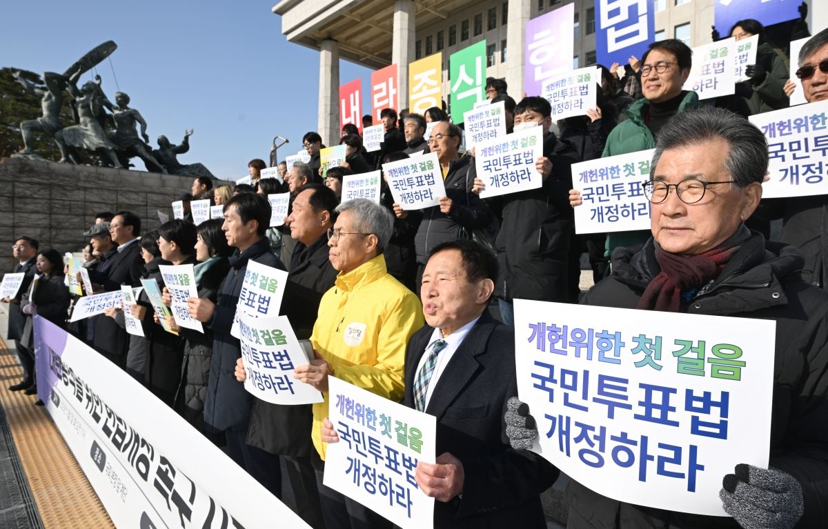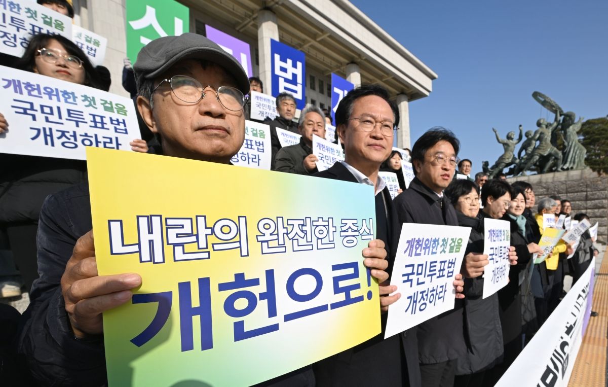 2ÀÏ ¼¿ï ¿©Àǵµ ±¹È¸ º»Ã» ¾Õ °è´Ü¿¡¼ ½Ã¹ÎÁÖµµ Çå¹ý°³Á¤ Àü±¹ ³×Æ®¿öÅ© °ü°èÀÚµéÀÌ '³»¶õ Á¾½ÄÀ» À§ÇÑ Çå¹ý°³Á¤ Ã˱¸ ½Ã±¹ ±âÀÚȸ°ß'À» ¿°í °³ÇåÀ» Ã˱¸Çϰí ÀÖ´Ù.