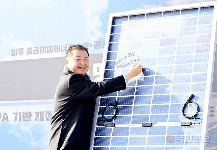 ±è°æÀÏ ÆÄÁÖ½ÃÀåÀÌ ¡®ÆÄÁÖ °ø°øÀç»ý¿¡³ÊÁö 1È£ ¹ßÀü¼Ò¡¯ Âø°ø½Ä¿¡¼­ ž籤 ÆÐ³Î¿¡ ±â³ä ½ÎÀÎÀ» Çϰí ÀÖ´Ù. ÆÄÁֽà Á¦°ø