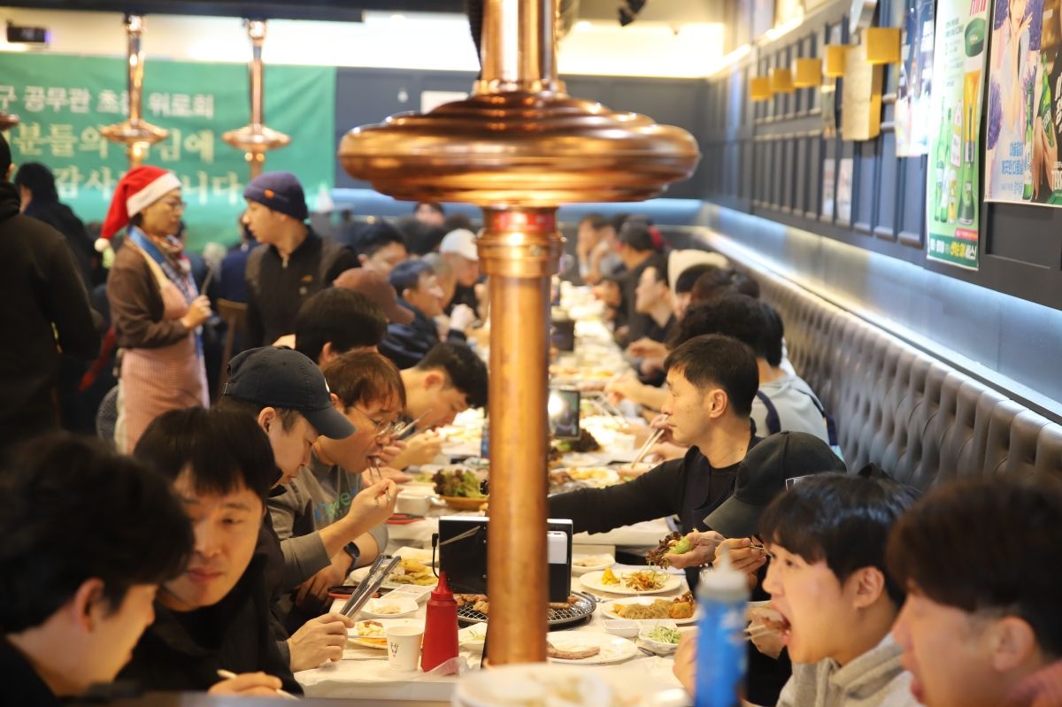 ÀÌ »ç¿ªÀº ±¸Ã»°úÀÇ ±ä¹ÐÇÑ Çù·Â À§¿¡¼ ÀÌ·ïÁø´Ù. ±¸Ã»Àå°ú Á÷¿ø 5~6¸íÀÌ ¸Å³â Âü¼®Çϰí, ³¯Â¥ Á¶À²°ú Àå¼Ò ¼±Á¤µµ ÇÔ²² ³íÀÇÇÑ´Ù. Çà»ç´Â ¿©·¯ ½Ä´çÀ» ¿Å°Ü ´Ù´Ï¸ç À̾î¿À´Ù°¡, 4³â ÀüºÎÅÍ´Â ¸í·ûÁø»ç°¥ºñ ¼º±Õ°ü´ëÁ¡¿¡¼ Á¤ÂøÇØ ÁøÇàµÇ°í ÀÖ´Ù. 100¸í ÀÌ»óÀÌ µ¿½Ã¿¡ ½Ä»çÇÒ ¼ö ÀÖ´Â °÷À» ã´Ù°¡ ¸í·ûÁø»ç°¥ºñ ¼º±Õ°ü´ëÁ¡ÀÌ ÃÖÁ¾ °áÁ¤µÆ±â ¶§¹®ÀÌ´Ù. Á¤¿À ¹«·ÆºÎÅÍ´Â ·¹Å©¸®¿¡À̼ǰú °æÇ°Ãß÷ÀÌ À̾îÁö°í, µ¹¾Æ°¡´Â °ø¹«°üµé¿¡°Ô´Â ³²³àº° ¾ç¸» ¼¼Æ®°¡ ³ª´²Áø´Ù.