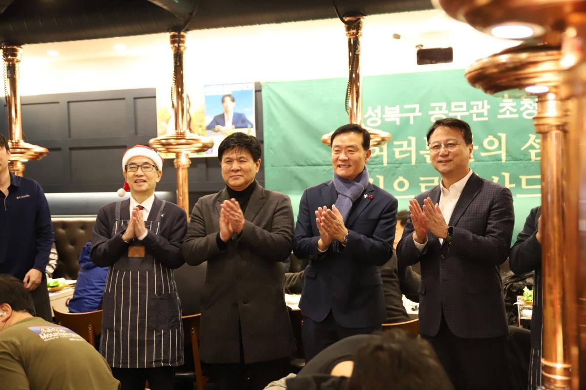 Áö³ 5ÀÏ ¿ÀÀü 11½Ã 30ºÐ ¼¿ï ¼ººÏ±¸ ¸í·ûÁø»ç°¥ºñ ¼º±Õ°ü´ëÁ¡. µÎÅùÇÑ ÆÐµùÁ¡ÆÛ°¡ ½Ä´ç ÇÑÂÊ¿¡ »©°îÈ÷ °É¸®°í, Ǫ¸¥ »óÀÚ¿¡´Â °ø¹«°üµéÀ» À§ÇÑ ¾ç¸» ¼±¹°ÀÌ ³ª¶õÈ÷ ³õ¿© ÀÖ¾ú´Ù. ¼ººÏ±¸Ã» û¼ÒÇàÁ¤°ú °ø¹«°ü 130¿©¸íÀÌ ÀÚ¸®¸¦ ä¿ìÀÚ »êŸ ¸ðÀÚ¸¦ ´·¯¾´ ÇÏ´ÃÀÌÀ½±³È¸(ÀÌ»óÀÏ ¸ñ»ç) ¼ºµµµéÀÌ ºÐÁÖÈ÷ ¹°ÀÜÀ» ä¿ì°í °í±â¸¦ ±Á±â ½ÃÀÛÇß´Ù. °ø¹«°üµéÀ» °Ý·ÁÇϱâ À§ÇØ ±¸Ã»Àå°ú ±¸Ã»°ü°èÀڵ鵵 ÀÚ¸®Çß´Ù.