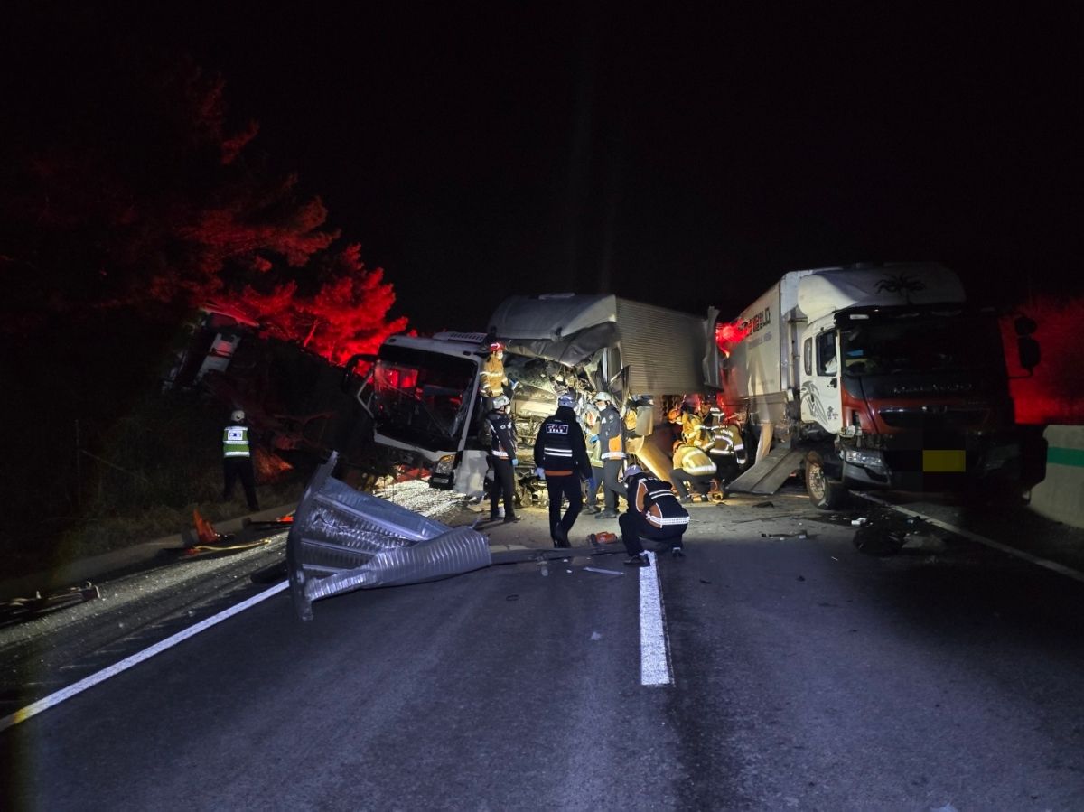 9ÀÏ ÀüºÏ¼Ò¹æº»ºÎ µî¿¡ µû¸£¸é À̳¯ ¿ÀÀü 3½Ã48ºÐÂë Àå¼ö±º ´ëÀü~Å뿵°í¼Óµµ·Î ÇÏÇ༱ ºÎ±Ù¿¡¼ 45Àν ¹ö½º¸¦ °ßÀÎÇÏ´ø Â÷·®À» µÚµû¸£´ø 14t À®¹Ùµð ȹ°Â÷¿Í 6.5t ȹ°Â÷°¡ ¿¬¼â Ãßµ¹Çß´Ù.
