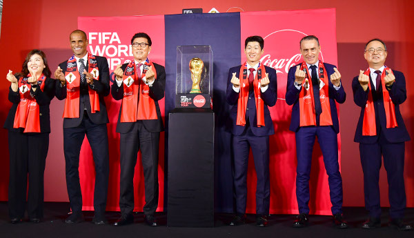 ¿ùµåÄÅ °ø½Ä ½ºÆù¼ÀÎ ÄÚÄ«Äݶó´Â 24ÀÏ ¼¿ï ¿©Àǵµ ´õÇö´ë¿¡¼ ¡®±¹Á¦Ã౸¿¬¸Í(FIFA) ¿ùµåÄÅ Æ®·ÎÇÇ Åõ¾î¡¯ Çà»ç¸¦ °®°í ½Ç¹° Æ®·ÎÇǸ¦ Çѱ¹ ÆÒµé¿¡°Ô °ø°³Çß´Ù. ¿ÞÂʺÎÅÍ ÃÖ¼öÁ¤ Çѱ¹ÄÚÄ«Äݶó ´ëÇ¥, FIFA ·¹Àüµå Àü ºê¶óÁú Ã౸ ±¹°¡´ëÇ¥ È÷¹Ù¿ìµÎ, Â÷¹ü±Ù Àü °¨µ¶, ¹ÚÁö¼º Àü ±¹°¡´ëÇ¥, ÆÄ¿ï·ç º¥Åõ Çѱ¹ ³²ÀÚ Ã౸´ëÇ¥ÆÀ °¨µ¶, ÀÌ¿ë¼ö ´ëÇÑÃ౸Çùȸ ºÎȸÀå. ÃÖÇö±Ô ±âÀÚ