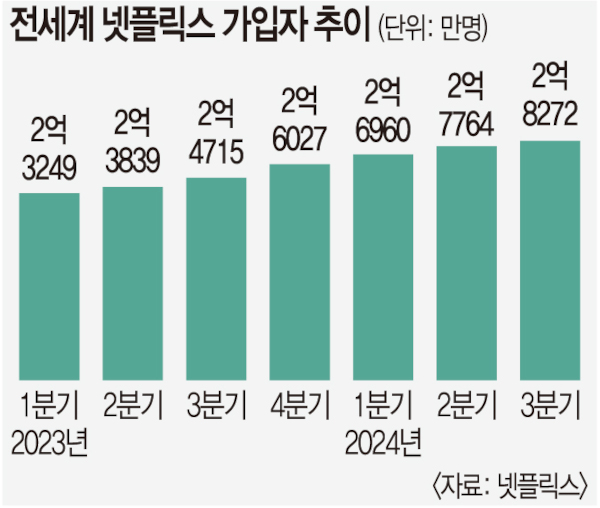 °¡ÀÔÀÚ ¼ö Á¤Ã¼¸¦ Ÿ°³Çϱâ À§ÇØ 2022³â 11¿ù ±¤°í ¿ä±ÝÁ¦¸¦ µµÀÔÇÑ ³ÝÇø¯½º´Â ½Å±Ô ±¸µ¶ÀÚ À¯ÀÔ¿¡ ¼º°øÇß´Ù. °¡ÀÔÀÚ °£ °èÁ¤ °øÀ¯¸¦ ¸·À¸¸é¼ »ç¿ëÀÚµéÀº Àú·ÅÇÑ ±¤°í ¿ä±ÝÁ¦·Î ¿Å°Ü°¬´Ù. ³ÝÇø¯½ºÀÇ ½Å±Ô ±¸µ¶ÀÚ Áß ±¤°í ¿ä±ÝÁ¦ ÀÌ¿ëÀÚ´Â 2023³â 5¿ù 22%¿¡¼ 2024³â 5¿ù 39%·Î Ä¡¼Ú¾Ò´Ù. ¿ÃÇØ 3ºÐ±â °¡ÀÔÀÚ´Â Àü ¼¼°è¿¡¼ 507¸¸¸í ´Ã¾î ÃÑ 2¾ï8272¸¸¸íÀ» ±â·ÏÇß´Ù. ³ÝÇø¯½º °¡ÀÔÀÚ ¼ö´Â 2022³â 2ºÐ±â ÀÌÈÄ ÇÑ ¹øµµ ²ªÀÌÁö ¾Ê¾Ò´Ù.