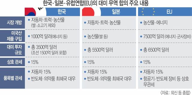¸·´ëÇÑ ´ë¹Ì ÅõÀÚ¸¦ ¾à¼ÓÇÑ ÀϺ»¡¤EU µîµµ ¸ðÈ£ÇÑ ÅõÀÚ ¾à¼ÓÀ¸·Î Æ®·³ÇÁ ´ëÅë·ÉÀÇ °ü¼¼¸¦ ÇÇÇÏ·Á ÇÑ´Ù´Â Áø´Üµµ ÀÖ´Ù. ´º¿åŸÀÓ½º(NYT)´Â ¡°°ü¼¼¿Í ´Þ¸® ÅõÀÚ¿Í ±¸¸Å ¾à¼ÓÀº ÁýÇà ¿©ºÎ¸¦ °¨½ÃÇϱ⠽±Áö ¾Ê´Ù¡±¸ç ¡°EU´Â ¹Ì±¹¿¡ ¾à¼ÓÇÑ ÅõÀÚ¸¦ ±â¾÷¿¡ ¸í·ÉÇÒ ±ÇÇÑÀÌ ¾ø°í, ÀϺ»ÀÌ ¾à¼ÓÇÑ ÅõÀÚ ´ëºÎºÐÀº ´ëÃâ ÇüÅ¡±¶ó°í º¸µµÇß´Ù.