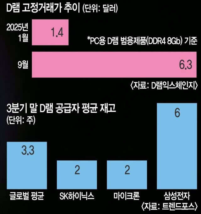 ¹ü¿ë D·¥(DDR4 8Gb ±âÁØ) °¡°Ýµµ Áö³ 1¿ù 1.4´Þ·¯¿¡¼ Áö³´Þ 6.3´Þ·¯±îÁö ²ÙÁØÈ÷ ¿Ã¶ú´Ù. ±¸Çü D·¥ °¡°ÝÀÌ 6´Þ·¯¸¦ ³ÑÀº °ÍÀº 2019³â 1¿ù ÀÌÈÄ 6³â 8°³¿ù ¸¸ÀÌ´Ù. ÁÖ¿ä ¸Þ¸ð¸® ¾÷üµéÀÌ HBM »ý»ê¿¡ ÁýÁßÇÏ°í ±¸Çü D·¥ »ý»êÀ» ÁÙÀÌ¸é¼ ¡®°ø±ÞÀÚ ¿ìÀ§¡¯ ¾ç»óÀÌ ±»¾îÁø °ÍÀÌ´Ù.