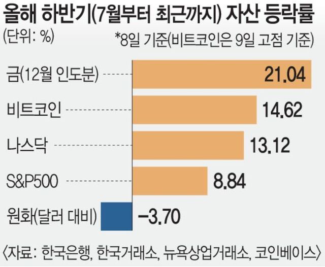 ¹Ý¸é ±¹Á¦ ±Ý°ª°ú ¹Ì±¹ Áõ½Ã, ºñÆ®ÄÚÀÎ °¡°ÝÀº Ä¡¼ÚÀ¸¸é¼ ±¹³» ÅõÀÚÀÚÀÇ Æ÷¸ð ½É¸®¸¦ ÀÚ±ØÇϰí ÀÖ´Ù. ¿ù±Þ¿¡¼ »ýȰºñ¸¦ Á¦¿ÜÇÑ ¿©Àµµ·À» ´Þ·¯ ÀÚ»êÀ¸·Î ¹Ù²Ù°Å³ª ºñÆ®ÄÚÀÎ µî¿¡ ÅõÀÚÇÏ´Â ¿òÁ÷ÀÓÀÌ Á÷ÀåÀÎµé »çÀÌ¿¡¼ È®»êÇÏ´Â ºÐÀ§±â´Ù. ÃÖÀç¿ø ¼¿ï´ë °æÁ¦ÇкΠ±³¼ö´Â Çö »óȲ¿¡ ´ëÇØ ¡°¿ÏÀüÈ÷ ¡®¸®½ºÅ© ¿Â¡¯(Risk On¡¤À§ÇèÀÚ»ê ¼±È£½É¸®) »óȲÀ¸·Î ¸ðµç À§ÇèÀڻ꿡 µ·ÀÌ ¸ô¸®°í ÀÖ´Ù¡±¸ç ¡°ÀÌ °æ¿ì ±Ý°ªÀº ³»·Á°¡¾ß ÇÏÁö¸¸ ¡®µðº£À̽º¸ÕÆ® Æ®·¹À̵塯(debasement trade¡¤ÈÆó °¡Ä¡ ÀúÇÏ¿¡ ´ëºñÇÑ ÅõÀÚ Àü·«)·Î ±Ý°ªµµ »ó½Â Áß¡±À̶ó°í ¼³¸íÇß´Ù.