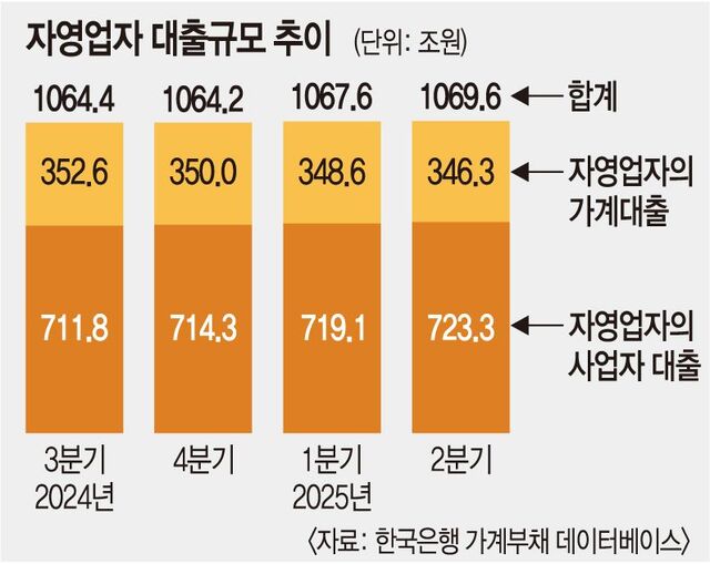 Çѱ¹ÀºÇàÀÌ 12ÀÏ ±¹È¸ ÇàÁ¤¾ÈÀüÀ§¿øÈ¸ ¼Ò¼Ó ¾çºÎ³² ´õºÒ¾î¹ÎÁÖ´ç ÀÇ¿ø°ú ±âȹÀçÁ¤À§¿øÈ¸ ¼Ò¼Ó ¹Ú¼ºÈÆ ±¹¹ÎÀÇÈû ÀÇ¿ø½Ç¿¡ Á¦ÃâÇÑ ¡®ÀÚ¿µ¾÷ÀÚ ´ëÃâ ÇöȲ¡¯ ÀÚ·á¿¡ µû¸£¸é Áö³ 2ºÐ±â ¸» ±âÁØ Àüü ÀÚ¿µ¾÷ÀÚÀÇ Àü ±ÝÀ¶±â°ü »ó´ë ´ëÃâ Àܾ×Àº 1069Á¶6000¾ï¿øÀ¸·Î Ãß»êµÆ´Ù. Á÷Àü 1ºÐ±â ¸»(1067Á¶6000¾ï¿ø) ´ëºñ 2Á¶¿ø Áõ°¡ÇÑ ¾×¼ö·Î, ÇØ´ç Åë°è¸¦ Áý°èÇϱ⠽ÃÀÛÇÑ 2012³â ÀÌÈÄ °¡Àå Å« Àܾ×ÀÌ´Ù. ÇÑÀºÀº ÀÚü °¡°èºÎä µ¥ÀÌÅͺ£À̽º(DB)¿¡¼ °³Àλç¾÷ÀÚ ´ëÃâÀ» ¹ÞÀº »ç¶÷À» ÀÚ¿µ¾÷ÀÚ·Î ºÐ·ùÇϰí, À̵éÀÇ »ç¾÷ÀÚ ´ëÃâ°ú °¡°è´ëÃâ Àܾ×À» ÇÕ»êÇØ ÀÚ¿µ¾÷ÀÚ ´ëÃâÀ» °è»êÇϰí ÀÖ´Ù.