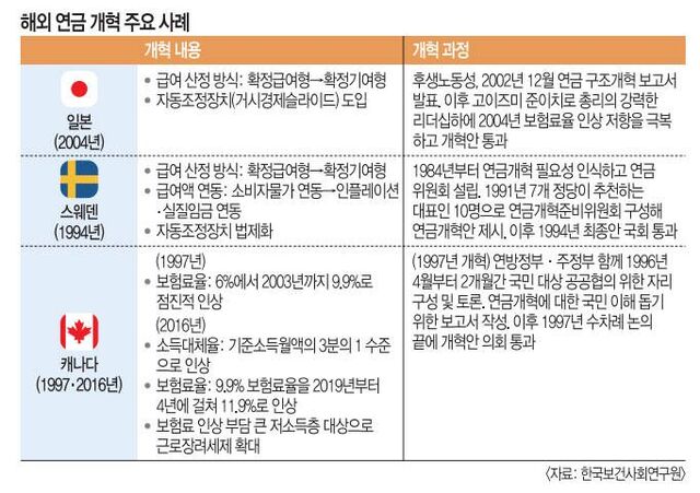 Çѱ¹Àº Áö³ 3¿ù ±¹¹Î¿¬±Ý¹ý °³Á¤¾ÈÀ» Åë°ú½ÃŰ¸ç º¸Çè·áÀ²°ú ¼Òµæ´ëüÀ²À» Á¶Á¤ÇÏ´Â ¸ð¼ö °³ÇõÀ» ½Ç½ÃÇß´Ù. ÇÏÁö¸¸ ±Ùº»ÀûÀÎ ±¸Á¶°³Çõ±îÁö´Â °¥ ±æÀÌ ¸Ö´Ù´Â Æò°¡´Ù. Çѱ¹º¸´Ù ¸ÕÀú ¿¬±Ý°³ÇõÀ» ½ÃµµÇÑ ÇØ¿Ü ÁÖ¿ä ±¹°¡µéµµ ÀûÁ¤ ¿¬±Ý ¼ö±Þ ¿¬·É¿¡ ´ëÇØ °í¹ÎÇÏ´Â µî º¸À强°ú Áö¼Ó°¡´É¼º »çÀÌ¿¡¼ °í¹ÎÀ» °ÅµìÇϰí ÀÖ´Ù.
