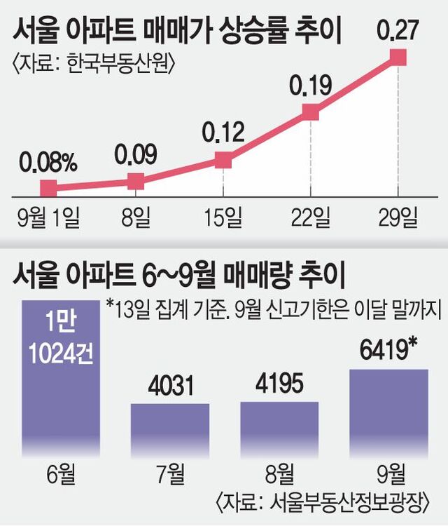 ¼¿ï ¾ÆÆÄÆ® °Å·¡·®µµ ´Ù½Ã ´Ã°í ÀÖ´Ù. ¼¿ïºÎµ¿»êÁ¤º¸±¤Àå¿¡ µû¸£¸é Áö³ 13ÀÏ ±âÁØ 9¿ù ¾ÆÆÄÆ® ¸Å¸Å·®Àº 6419°ÇÀ» ±â·ÏÇß´Ù. 6¡¤27 ´ëÃâ±ÔÁ¦ Á÷ÈÄ 7¿ù 4031°Ç, 8¿ù 4195°Çº¸´Ù 2000°Ç ÀÌ»ó ´Ã¾î³ ¼öÄ¡´Ù. °Å·¡ ½Å°í±âÇÑÀÌ ÀÌ´Þ ¸»±îÁö¿©¼ 7000°ÇÀ» ³ÑÀ» ¼öµµ ÀÖ´Ù.