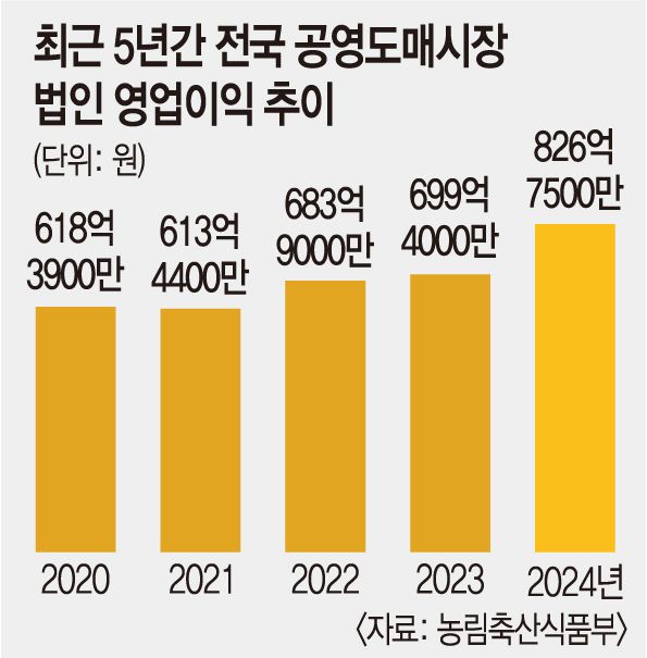 Àü±¹ ³ó»ê¹° °¡°ÝÀ» Á¿ìÇÏ´Â °ø¿µµµ¸Å½ÃÀå¿¡¼ ³ó¹ÎµéÀÌ ³ó»ê¹°À» ³³Ç°ÇÒ ¶§¸¶´Ù ºÙ´Â À¯Åëºñ¿ë(À§Å¹¼ö¼ö·á¡¤ÇÏ¿ªºñ)ÀÌ ÃÖ±Ù 5³â°£ ²ÙÁØÈ÷ ¿À¸¥ °ÍÀ¸·Î ³ªÅ¸³µ´Ù. ¹Ý¸é ÀÌ·± ÆÇ¸Å ´ëÇà ¼ö¼ö·á¸¦ ì±â´Â µµ¸Å¹ýÀÎÀÇ ¿µ¾÷ÀÌÀÍÀº °°Àº ±â°£ 33% ±ÞÁõÇß´Ù. ³ó¹Î ¼Õ¿¡ Áã¾îÁö´Â ¸òÀº ÁÙ°í ¼ÒºñÀÚ ¹°°¡´Â ¿À¸£´Âµ¥ µµ¸Å»ó¸¸ ¹è ºÒ¸®´Â À¯Å뱸Á¶°¡ ±»¾îÁö°í ÀÖ´Ù´Â ÁöÀûÀÌ ³ª¿Â´Ù.