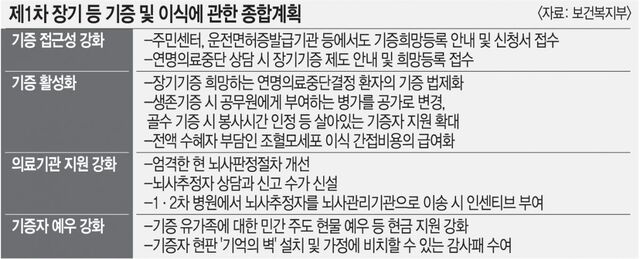 ÇöÀç ±¹³» Àå±â±âÁõÀº ³ú»ç¿¡¸¸ ÀüÀûÀ¸·Î ÀÇÁ¸Çϰí ÀÖ´Ù. ÀÌ¿¡ Á¤ºÎ´Â ±âÁõÀ» Èñ¸ÁÇÏ´Â ¿¬¸íÀÇ·á Áß´ÜÀÚÀÇ ¡®¼øÈ¯Á¤Áö ÈÄ Àå±â±âÁõ(DCD)¡¯À̶ó´Â »õ Ȱ·Î¸¦ ±¸ÃàÇÒ ¿¹Á¤ÀÌ´Ù. ¹Ì±¹À̳ª ½ºÆäÀÎ µî ÀÌ½Ä ¼±Áø±¹¿¡¼± º¸ÆíÈµÈ ¹æ½ÄÀ¸·Î À̸¦ À§ÇÑ ¹ý °³Á¤¿¡ Âø¼öÇÑ´Ù.