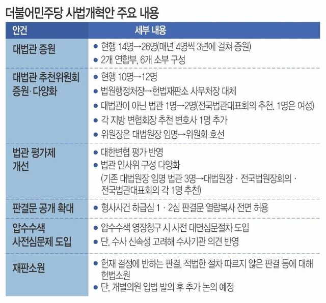 ´õºÒ¾î¹ÎÁÖ´çÀº 20ÀÏ »ç¹ý°³ÇõƯº°À§¿øÈ¸ Â÷¿øÀÇ °³Çõ¾ÈÀ» °ø°³ÇÏ¸ç ¿¬³» ÀÔ¹ý ¸¶¹«¸® ÀýÂ÷¿¡ µ¹ÀÔÇß´Ù. °¡Àå Å« °ü½ÉÀ» ¸ð¾Ò´ø ´ë¹ý°ü Áõ¿øÀº ¹ý ½ÃÇà 1³â µÚºÎÅÍ ¸Å³â 4¸í¾¿ 3³â¿¡ °ÉÃÄ ÃÑ 12¸í Áõ¿øÀ¸·Î È®Á¤Çß´Ù. ¹ÎÁÖ´ç °èȹ´ë·Î¶ó¸é ÀÌÀç¸í ´ëÅë·É Àӱ⠳»ÀÎ 2028³â¿¡ ¡®´ë¹ý°ü 26¸í¡¯ üÁ¦°¡ ¿Ï¼ºµÈ´Ù. ÀÌ ´ëÅë·ÉÀº ´çÀå ³»³â¿¡¸¸ ³ëžǡ¤ÀÌÈﱸ ´ë¹ý°üÀÇ ÈÄÀÓ°ú Áõ¿ø ´ë¹ý°ü 4¸í µî 6¸íÀ» »õ·Î ÀÓ¸íÇÒ ¼ö ÀÖ´Ù.