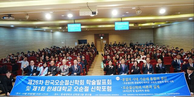 ÇѼ¼´ë ±³¼öÁø°ú ¿©Àǵµ¼øº¹À½±³È¸ ±³¿ªÀÚ, Çѱ¹¿À¼øÀý½ÅÇÐȸ ¿¬±¸ÀÚµéÀÌ Âü¿©ÇØ È°¹ßÇÑ ¹ßÁ¦¿Í Åä·ÐÀÌ À̾îÁ³´Ù. ¡®ºÐ¿ÀÇ ½Ã´ë °¡¿îµ¥ ÅëÇÕ Á¤½Å¡¯ ¼¼¼Ç¿¡¼´Â ±³È¸ÀÇ ¿¬ÇÕ°ú Çö´ë»çȸÀÇ µµÀüÀ», ¡®¿À¼øÀý ½ÅÇÐÀÇ À̷аú ½ÇÁ¦¡¯ ¼¼¼Ç¿¡¼´Â Á¶Á÷½ÅÇаú ¼³±³ÇÐ °üÁ¡¿¡¼ ¿À¼øÀý ½ÅÇÐÀÇ À̷аú ½ÇõÀ» ´Ù·ð´Ù.