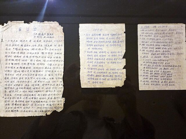 ÀÓ À§¿øÀåÀº ¡°ºÏÇÑ¿¡¼´Â ¼º°æ ¼ÒÁö¸¸À¸·Îµµ Á¤Ä¡¹üÀÌ µÉ ¼ö ÀÖ¾î ÁöÇϱ³ÀεéÀº ¼º°æÀ» ¼ÕÀ¸·Î º£²¸ ÀÛÀº Á¾ÀÌ¿¡ Àû¾î ¼û±â°í ´Ù´Ï´Ù ¼·Î ±³È¯Çϸç Àд´١±°í ¼³¸íÇß´Ù. ±×·¯¸é¼ ¡°ºÏÇÑ¿¡¼± ¾î´À Áö¿ª ÃѰ¢°ú ¾î´À Áö¿ª ó³à°¡ ±âµ¶±³ÀÎÀÌ¸é ¾ó±¼µµ º¸Áö ¾Ê°í °áÈ¥ÇÑ´Ù°í ÇÑ´Ù. ±×·¸°Ô ½Å¾Ó °øµ¿Ã¼¸¦ À¯ÁöÇØ ³ª°¡´Â °Í¡±À̶ó°í ÀüÇß´Ù. ÀϺΠÇʻ纻Àº ºÏÇÑ¿¡¼ ÆÞÇÁ ´ë½Å »ç¿ëÇÏ´Â ¿Á¼ö¼ý´ë Á¾ÀÌ¿¡ ¾²¿´°í ¿¾ ÇÑ±Û Ç¥±â°¡ ³²¾Æ ÀÖ¾î ÇØ¹æ ÀüÈÄ ¼º°æÀÌ Çʻ縦 ÅëÇØ À̾îÁ® ¿ÔÀ½À» º¸¿©ÁØ´Ù.