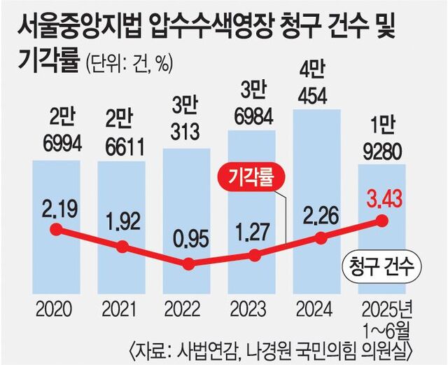 Ư°Ë µî Áß¿ä »ç°ÇÀÌ ¸ô¸®´Â ¼¿ïÁß¾ÓÁö¹ýÀÇ ¾Ð¼ö¼ö»ö¿µÀå ±â°¢·üµµ ³ô¾ÆÁ³´Ù. ³ª°æ¿ø ±¹¹ÎÀÇÈû ÀÇ¿øÀÌ ¹ý¿øÇàÁ¤Ã³·ÎºÎÅÍ ¹ÞÀº Åë°è¿¡ µû¸£¸é ¿ÃÇØ 1~6¿ù ¼¿ïÁß¾ÓÁö¹ý¿¡´Â 1¸¸9280°ÇÀÇ ¾Ð¼ö¼ö»ö¿µÀåÀÌ Ã»±¸µÆ°í ±×Áß 3.43%ÀÎ 662°ÇÀÌ ±â°¢µÆ´Ù. ÃÖ±Ù 5³â Áß °¡Àå ³ô´Ù. ÀÌÀç¿ë »ï¼ºÀüÀÚ È¸ÀåÀÇ ºÎ´çÇÕº´¡¤ºÐ½Äȸ°è ÀÇȤ »ç°Ç, ¼Û¿µ±æ ¼Ò³ª¹«´ç ´ëÇ¥ÀÇ ´õºÒ¾î¹ÎÁÖ´ç µ·ºÀÅõ »ç°Ç µî ¾Ð¼ö¼ö»öÀ» ÅëÇØ È®º¸ÇÑ Áõ°Å¿©µµ º°°ÇÀ̰ųª ÀýÂ÷°¡ Àû¹ýÇÏÁö ¾Ê¾Ò´Ù¸é ÆÇ´Ü ±Ù°Å¿¡¼ ¹èÁ¦ÇÏ´Â ÆÇ°áµµ ½É½ÉÄ¡ ¾Ê°Ô ³ª¿À°í ÀÖ´Ù. ¼öµµ±ÇÀÇ ÇÑ ºÎÀåÆÇ»ç´Â ¡°ºÒ±¸¼Ó ¼ö»ç¶ó´Â ¿øÄ¢°ú ÇǰíÀÎ À뱂 µî¿¡ ´ëÇÑ ¹ý¿ø ³» °ø°¨´ë°¡ ³Ð¾îÁö´Â ºÐÀ§±â°¡ ¹Ý¿µµÈ °ÍÀ¸·Î º¸Àδ١±°í ¸»Çß´Ù.