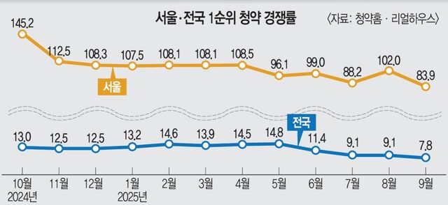 22ÀÏ ºÐ¾çÆò°¡ Àü¹®È¸»ç ¸®¾óÇϿ콺¿¡ µû¸£¸é Áö³´Þ Àü±¹ Æò±Õ 1¼øÀ§ û¾à °æÀï·üÀº 7.78´ë 1·Î Áý°èµÆ´Ù. 2023³â 9¿ù(7.0´ë 1) ÀÌÈÄ 2³â ¸¸ÀÇ ÃÖÀúÄ¡´Ù. ³ôÀº °æÀï·üÀ» ±â·ÏÇØ¿Â ¼¿ïµµ Áö³´Þ¿£ 83.88´ë 1·Î Áö³ÇØ 7¿ù(90.07´ë 1) ÀÌÈÄ °¡Àå ³·Àº ¼öÄ¡¸¦ º¸¿´´Ù. ¼öµµ±Ç Áö¿ªÀÇ ÁÖÅô㺸´ëÃâ Çѵµ 6¾ï¿ø Á¦ÇÑ, ¼ÒÀ¯±Ç ÀÌÀü Á¶°ÇºÎ Àü¼¼´ëÃâ ±ÝÁö µîÀÇ ¿©ÆÄ ¿µÇâÀ¸·Î ºÐ¼®µÈ´Ù.