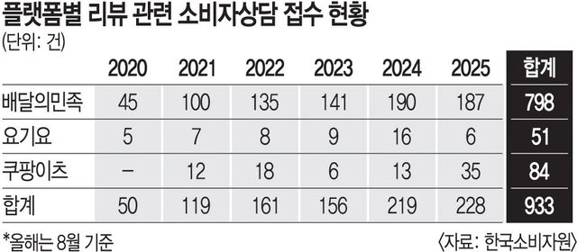 °øÁ¤À§ ½ÃÁ¤ Á¶Ä¡ ÀÌÈÄ °ü·Ã ¹Î¿øµµ µÇ·¹ Áõ°¡Çϰí ÀÖ´Ù. ¼ÒºñÀÚ¿ø¿¡ Á¢¼öµÈ ¸®ºä °ü·Ã »ó´ãÀº 2020³â 50°Ç¿¡¼ ¿ÃÇØ 8¿ù±îÁö 228°ÇÀ¸·Î, 5³â ¸¸¿¡ ¾à 4.5¹è Áõ°¡Çß´Ù. ÀÌ ±â°£ ´©Àû »ó´ã °Ç¼ö¸¦ º¸¸é ¹è¹Î ÀÌ¿ëÀÚ »ó´ãÀÌ 798°ÇÀ¸·Î ÀüüÀÇ 85.5%¸¦ Â÷ÁöÇß°í ÄíÆÎÀÌÃ÷ 84°Ç, ¿ä±â¿ä 51°Ç ¼øÀ̾ú´Ù.