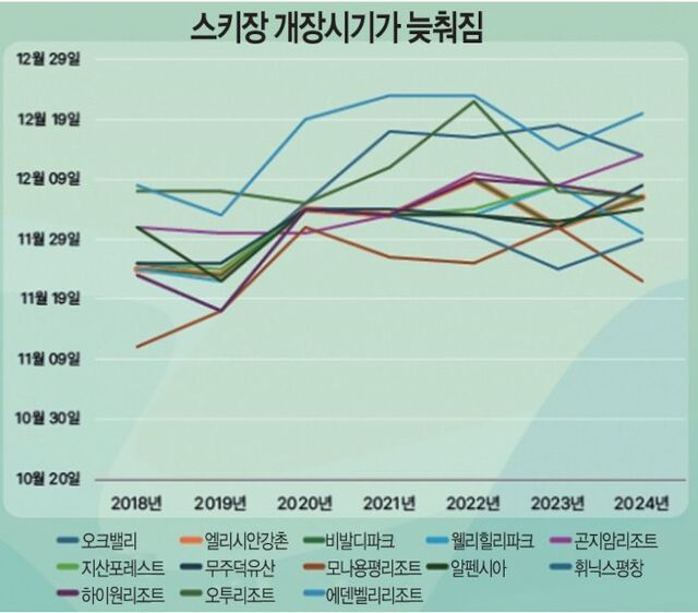 ÀüÅëÀû ¼º¼ö±âÀÇ À̵¿µµ È®ÀεƴÙ. ´ëÇ¥Àû º½ ¼º¼ö±â´Â 5¿ùÀ̾úÀ¸³ª ÃÖ±Ù¿¡´Â 3~4¿ùÀÌ »õ·Ó°Ô ºÎ»óÇß´Ù. Áö¿ªº° ÆíÂ÷´Â ÀÖÁö¸¸ Àü±¹ º¢²É °³È ½Ã±â´Â 2018³â ´ëºñ 2024³â¿¡ Æò±Õ 3Àϰ¡·® ¾Õ´ç°ÜÁ³´Ù. ¿©¸§Àº ÀÚ¿¬¡¤ÈÞ¾ç °ü±¤Áö ¼ö¿ä Áõ°¡ÀÇ Áß½ÉÀÌ 8¿ù·Î À̵¿Çϸç ÇÑ¿©¸§ ÁýÁß Çö»óÀÌ °ÈµÆ´Ù. °¡À»Àº À¯ÀÏÇÏ°Ô ±â¿Â »ó½ÂÀÇ ±àÁ¤Àû È¿°ú°¡ Áö¼ÓµÇ´Â °èÀý·Î È®ÀεƴÙ. 10~11¿ùÀÌ ¸ðµç °ü±¤Áö À¯Çü¿¡¼ ¾ÈÁ¤Àû ¼º¼ö±â·Î ÀÚ¸®Àâ¾Ò´Ù. ½ºÅ°Àå °³Àå ½Ã±â°¡ ´ÊÃçÁö°í Àû¼³·® ºÎÁ·À¸·Î ¿î¿µ ½ÃÁðÀÌ ´ÜÃàµÅ °Ü¿ïÀº ±â¿Â »ó½Â ½Ã ´ëºÎºÐÀÇ °ü±¤Áö¿¡¼ ¹æ¹®°´ÀÌ °¨¼ÒÇß´Ù. °Ü¿ï ¼º¼ö±â°¡ »ç¶óÁö´Â °ÍÀ¸·Î Ç®À̵ȴÙ.