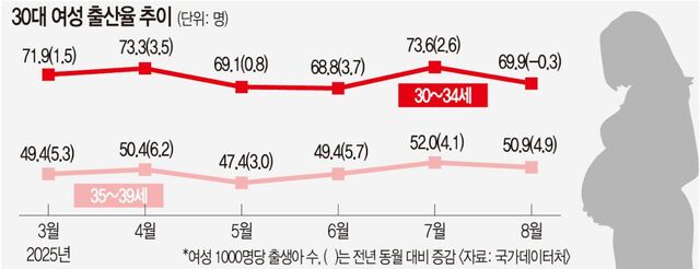 ƯÈ÷ °°Àº 30´ë ¾È¿¡¼­µµ Ãâ»ê ½Ã±â°¡ Á¡Â÷ ´Ê¾îÁö°í ÀÖ¾ú´Ù. ¿©¼º 1000¸í´ç Ãâ»ý¾Æ ¼ö·Î °¡´ÆÇÏ´Â ¿¬·Éº° Ãâ»êÀ²¿¡¼­ 30´ë ÈÄ¹Ý ¿©¼ºÀº 46.0¸í¿¡¼­ 50.9¸íÀ¸·Î 4.9¸í ´Ã¾úÁö¸¸, 30´ë ÃÊ¹Ý ¿©¼ºÀº 70.2¸í¿¡¼­ 69.9¸íÀ¸·Î 0.3¸í ÁÙ¾î Áö³­ÇØ 4¿ù ÀÌÈÄ Ã³À½ °¨¼Ò¼¼·Î µ¹¾Æ¼¹´Ù. µ¥ÀÌÅÍó °ü°èÀÚ´Â ¡°±×°£ Ãâ»êÀ² ¹ÝµîÀ» °ßÀÎÇÏ´ø 30´ë ÃÊ¹Ý ¿¬·ÉÃþÀÇ Ãâ»êÀ²ÀÌ ¼ÒÆø ÁÙ¾ú´Ù¡±¸ç ¡°³»³âºÎÅÍ Ãâ»ê ¿¬·É´ë »óÇâ À̵¿ÀÌ ½ÃÀÛµÉ °ÍÀ¸·Î ¿¹»óÇߴµ¥ À̹ø ´ÞÀÌ ±× È帧ÀÇ ÀüÁ¶ÀÏÁö ÁöÄѺ¸°í ÀÖ´Ù¡±°í ¼³¸íÇß´Ù.