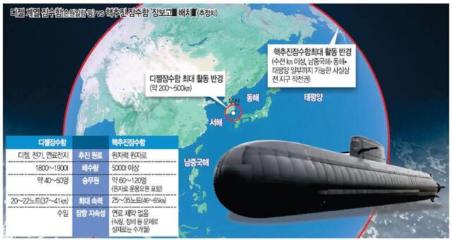 À庸°íIII ¹èÄ¡III¿¡ ÇÙ ¿øÀڷΰ¡ žÀçµÇ¸é ¿ì¸® ÇØ±ºÀÇ ÀÛÀü ¹üÀ§´Â ȹ±âÀûÀ¸·Î È®ÀåµÉ °ÍÀ¸·Î º¸ÀδÙ. ¹èÅ͸® ±â¹ÝÀÇ ±âÁ¸ µðÁ© Àá¼öÇÔÀº ÀϹÝÀûÀ¸·Î ¼öÀÏ¿¡¼ ÃÖ´ë 2ÁÖ°¡·® ÀáÇ×ÇÒ ¼ö ÀÖ´Ù. Àå°Å¸® ¿øÇØ ÀÛÀü ½Ã ¿¬·á ÃæÀüÀ» À§ÇØ ÁÖ±âÀûÀ¸·Î ºÎ»óÇØ¾ß ÇØ Àº¹Ð¼ºÀÌ Á¦ÇѵȴÙ. ¹Ý¸é ÇÙÃßÁø Àá¼öÇÔÀº ¿¬·á º¸Ãæ ¾øÀÌ ¼ö°³¿ù°£ ÀáÇ×ÇÒ ¼ö ÀÖ¾î Àå°Å¸® ¿øÇØ´Â ¹°·Ð ´ë¾ç¿¡¼µµ Áö¼ÓÀûÀÎ ÀÓ¹« ¼öÇàÀÌ °¡´ÉÇÏ´Ù. ƯÈ÷ ºÏÇÑÀÇ SLBM À§ÇùÀ» Àº¹ÐÈ÷ ŽÁöÇØ ÇÑ¡¤¹Ì ¿¬ÇÕÀÇ Å¸°Ý´É·Â°ú ¿¬°èÇϸé ÇѹݵµÀÇ ÇÙ ¾ïÁ¦·Â¿¡¼ ÇÙ½ÉÃàÀ¸·Î ±â´ÉÇÒ ¼ö ÀÖ´Ù.