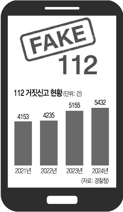 2ÀÏ °æÂûû¿¡ µû¸£¸é 112 °ÅÁþ½Å°í´Â 2021³â 4153°Ç, 2022³â 4235°Ç, 2023³â 5155°Ç, 2024³â 5432°ÇÀ¸·Î ÇØ¸¶´Ù Áõ°¡Çß´Ù. Çü»ç ÀÔ°Ç ¼ö´Â 2021³â 954°Ç¿¡¼­ 2024³â 1256°ÇÀ¸·Î ´Ã¾ú´Ù. °°Àº ±â°£ Áï°á½ÉÆÇÀ¸·Î ó¸®µÈ »ç·Ê´Â 2803°Ç¿¡¼­ 3617°ÇÀ¸·Î Áõ°¡Çß´Ù.