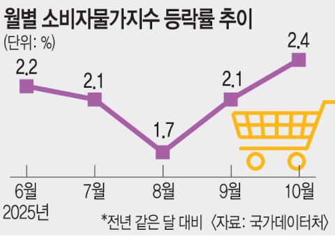 ±¹°¡µ¥ÀÌÅÍó°¡ 4ÀÏ ¹ßÇ¥ÇÑ ¡®10¿ù ¼ÒºñÀÚ¹°°¡µ¿Ç⡯¿¡ µû¸£¸é Áö³´Þ ¼ÒºñÀÚ¹°°¡Áö¼ö´Â 117.42(2020³â=100)·Î, Áö³ÇØ °°Àº ´Þº¸´Ù 2.4% »ó½ÂÇß´Ù. Áö³ÇØ 7¿ù(2.6%) ÀÌÈÄ °¡Àå ³ôÀº ¼öÁØÀÌ´Ù.