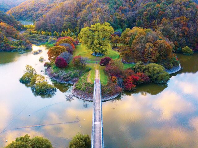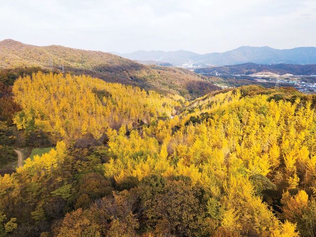 Àü³² ´ã¾ç¿¡´Â ´ú ¾Ë·ÁÁø ÀºÇ೪¹«½£ÀÌ ÀÖ´Ù. »çÀ¯ÁöÀÎ ¡®´ö°æ¼ö¸ñ³ó¿ø¡¯ ¾È¿¡ ÀÖ´Ù. ´Üdz³ª¹« µîÀÌ ¿ï±ßºÒ±ßÇÑ ¼ö¸ñ¿ø °¡¿îµ¥ Á÷¼±ÀÇ ºñÆ÷Àåµµ·Î°¡ »¸¾î°¡°í ¾çÂÊÀ¸·Î Ȳ±Ý»ö ¿ÊÀ» ÀÔÀº Ű Å« ÀºÇ೪¹«°¡ µµ¿ÇØ ÀÖ´Ù. 700m °Å¸®ÀÇ ±æÀº ¾çÂÊÀ¸·Î 150±×·ç ÀÌ»óÀÇ ³ª¹«·Î ÀÌ·ïÁ® ÀÖ´Ù.