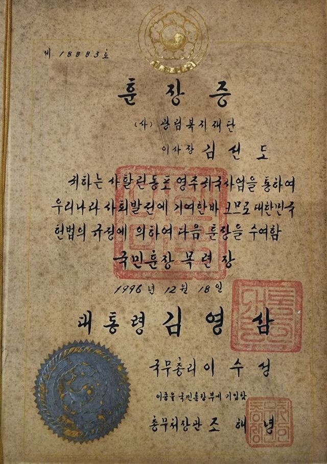 »çÇÒ¸° µ¿Æ÷ ±Íȯ »ç¾÷Àº ¹Î°£ÀÎ ±³È¸°¡ ½ÇÁúÀû Á¤Âø ´ëÃ¥±îÁö ¸¶·ÃÇØ À̲ö º¸±â µå¹® »ç·Ê¿´´Ù. Á¤ºÎ´Â 97³â ÀÌ °ø·Î¸¦ ÀÎÁ¤ÇØ ±è ¸ñ»ç¿¡°Ô ±¹¹ÎÈÆÀå ¸ñ·ÃÀåÀ» ¼ö¿©Çß´Ù.
