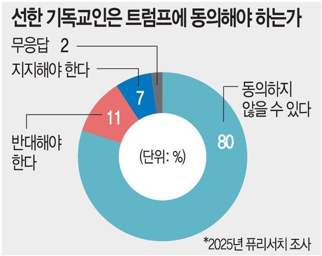 ÀÌ·± Æ®·³ÇÁ ´ëÅë·ÉÀ» ¹Ì±¹ ±³È¸¿¡¼± ±âµ¶±³Àû °¡Ä¡¸¦ Á¸ÁßÇÏ°í ±³È¸¸¦ ÁöŰ´Â ¼öÈ£ÀÚó·³ ºÎ¸¥´Ù. ¸ð·² ¸ÓÀú¸®Æ¼(Moral Majority)¿îµ¿ ¼³¸³ÀÚÀÇ ¾ÆµéÀÎ Á¦¸® ÆúÀ£ ÁִϾî´Â Æ®·³ÇÁ°¡ ´ç¼±µÇÀÚ ¡°º¹À½ÁÖÀÇÀÚµéÀÌ ²Þ²Ù´ø ´ëÅë·ÉÀ» ã¾Ò´Ù¡±°í ȯ¿µÇß´Ù. Æ®·³ÇÁ¸¦ ÁöÁöÇÏ´Â ±âµ¶±³ÀεéÀº ±×¸¦ À̽º¶ó¿¤ÀÇ Ãâ¾Ö±ÁÀ» À̲ö ¸ð¼¼, Æ÷·Î»ýȰ¿¡¼ À¯´ë ¹ÎÁ·À» ÇØ¹æ½ÃŲ Æä¸£½Ã¾ÆÀÇ °í·¹½º(Ű·ç½º) ¿Õ¿¡ ºñÀ¯Çϱ⵵ ÇÑ´Ù.