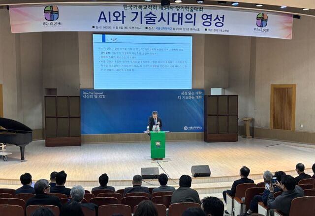 Çѱ¹±âµ¶±³ÇÐȸ(ȸÀå °¼º¿µ)´Â 8ÀÏ °æ±âµµ ºÎõ ¼¿ï½ÅÇдë(ÃÑÀå Ȳ´öÇü)¿¡¼ Á¦54ȸ Á¤±âÇмú´ëȸ¸¦ °³ÃÖÇß´Ù(»çÁø). ¡®AI¿Í ±â¼ú½Ã´ëÀÇ ¿µ¼º¡¯À̶õ ÁÖÁ¦·Î ¿¸° Çà»ç´Â ±â¼ú¹®¸íÀÌ Àΰ£Àǽİú ½Å¾Ó, ¿µ¼º¿¡ ¹ÌÄ¡´Â ¿µÇâÀ» ½ÅÇÐÀûÀ¸·Î ¼ºÂûÇϱâ À§ÇÑ ÀÚ¸®¿´´Ù. AI¿¡ °ü½ÉÀ» µÐ ÇöÁ÷ ¸ñȸÀÚ¸¦ ºñ·ÔÇØ ±³¼ö Çлý µî 150¿©¸íÀÌ Âü¼®Çß´Ù.