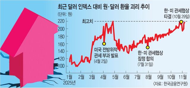 ÀÌ´Þ ÃÊ ¡®´Þ·¯ °¼¼¡¯´Â ¼ÒÆø ÁøÁ¤µÆÁö¸¸ ¿ø¡¤´Þ·¯ ȯÀ²Àº ³»¸± ±â¹Ì¸¦ º¸ÀÌÁö ¾Ê°í ÀÖ´Ù. °³ÀΡ¤±â¾÷ÀÇ ´Ã¾î³ ÇØ¿ÜÅõÀÚ¿Í °è¼ÓµÇ´Â ´ë¹Ì ¸®½ºÅ©°¡ 1400¿ø´ë Áß¹ÝÀÇ °íȯÀ²À» ¡®´º³ë¸Ö¡¯·Î °íÁ¤½ÃŰ´Â ±¸Á¶Àû ¿äÀÎÀ¸·Î ÀÛ¿ëÇϰí ÀÖ´Ù´Â ºÐ¼®ÀÌ ³ª¿Â´Ù.