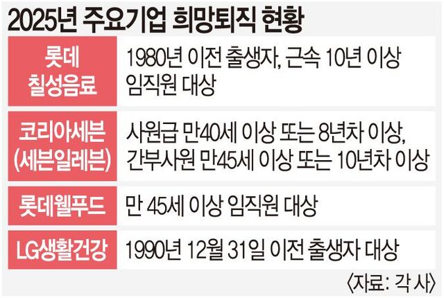 ·Ôµ¥Ä¥¼ºÀ½·á´Â ¿À´Â 21ÀϱîÁö 1980³â ÀÌÀü Ãâ»ýÀÚ¿Í ±Ù¼Ó 10³â ÀÌ»ó ÀÓÁ÷¿øÀ» ´ë»óÀ¸·Î Èñ¸ÁÅðÁ÷ ÇÁ·Î±×·¥À» ÁøÇàÇϰí ÀÖ´Ù°í 10ÀÏ ¹àÇû´Ù. ·Ôµ¥Ä¥¼ºÀ½·á°¡ Èñ¸ÁÅðÁ÷À» ¹Þ´Â °ÍÀº 1950³â ⸳ ÀÌÈÄ Ã³À½ÀÌ´Ù. ¿ÃÇØ ·Ôµ¥±×·ì °è¿»ç¿¡¼´Â ÄÚ¸®¾Æ¼¼ºì(¼¼ºìÀÏ·¹ºì), ·Ôµ¥À£Çªµå µîÀÌ Èñ¸ÁÅðÁ÷À» ¹Þ°í ÀÖ´Ù. ÄÚ¸®¾Æ¼¼ºìÀº Áö³ÇØ¿¡ À̾î 2³â ¿¬¼Ó Èñ¸ÁÅðÁ÷À» ÁøÇà ÁßÀÌ´Ù. ÄÚ¸®¾Æ¼¼ºìÀº 2022³â ÀÌÈÄ °è¼ÓÇØ¼ ¿µ¾÷ÀûÀÚ¸¦ º¸´Â µî ºÎÁøÀÇ ´Ë¿¡¼ ºüÁ®³ª¿ÀÁö ¸øÇÏ´Â ¸ð½ÀÀÌ´Ù. ·Ôµ¥À£Çªµå´Â Èñ¸ÁÅðÁ÷ µî ÀÏȸ¼º ºñ¿ëÀ» Á¦¿ÜÇÏ¸é ¼öÀͼºÀÌ ¼ÒÆø °³¼± È帧À» º¸¿´À¸³ª, ºñ¿ë Àý°¨ ³ë·ÂÀº À̾°í ÀÖ´Ù. ¿ÃÇØ´Â ¸¸ 45¼¼ ÀÌ»ó ÀÓÁ÷¿øÀ» ´ë»óÀ¸·Î Èñ¸ÁÅðÁ÷À» ¹Þ´Â ÁßÀÌ´Ù.