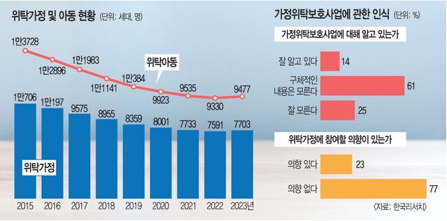À§Å¹°¡Á¤ Âü¿© ÀÇÇâÀº 23%·Î Á¶»çµÆ´Ù. Âü¿© ÀÇÇâÀÌ ¾ø´Ù´Â ÀÀ´äÀº 77%¿´´Ù. °¡Á¤À§Å¹º¸È£»ç¾÷ Âü¿© ÀÇÇâÀÌ ¾ø´Â 766¸í¿¡°Ô ±× ÀÌÀ¯¸¦ ¹°Àº °á°ú, °¡Àå ³ôÀº ÀÀ´äÀº ¡®ÇöÀç ³ªÀ̰¡ ¸¹¾Æ Àڳฦ ¾çÀ°Çϱ⠾î·Á¿ö¼­¡¯(38%, 1+2+3¼øÀ§ ÀÀ´ä ±âÁØ)¿´´Ù. ¡®°¡Á¤À§Å¹º¸È£»ç¾÷¿¡ Âü¿©ÇÒ Áغñ°¡ µÇ¾î ÀÖÁö ¾Ê¾Æ¼­¡¯(37%) ¡®´Ù¸¥ Àڳฦ Ãß°¡·Î ¾çÀ°ÇÒ »ý°¢ÀÌ ¾ø¾î¼­¡¯(24%) µîÀÇ ÀÀ´äÀÌ µÚ¸¦ À̾ú´Ù.